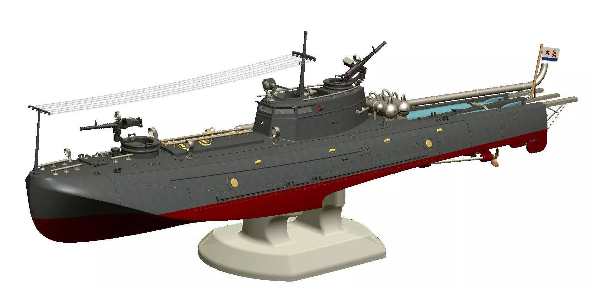 3D model descriptionThis 3D printable model represents the Soviet Tupolev G-5 torpedo boat, recreated at approximately 1:24 scale with a finished length of about 80 cm. Despite its size, the model is intentionally designed to be simple, robust, and easy to assemble. The entire main hull is constructed from only six primary parts, with extensive internal alignment bosses that make positioning and gluing precise and stress-free. The largest single hull piece measures approximately 270 × 155 × 60 mm, keeping all critical parts well within the capabilities of common desktop 3D printers.