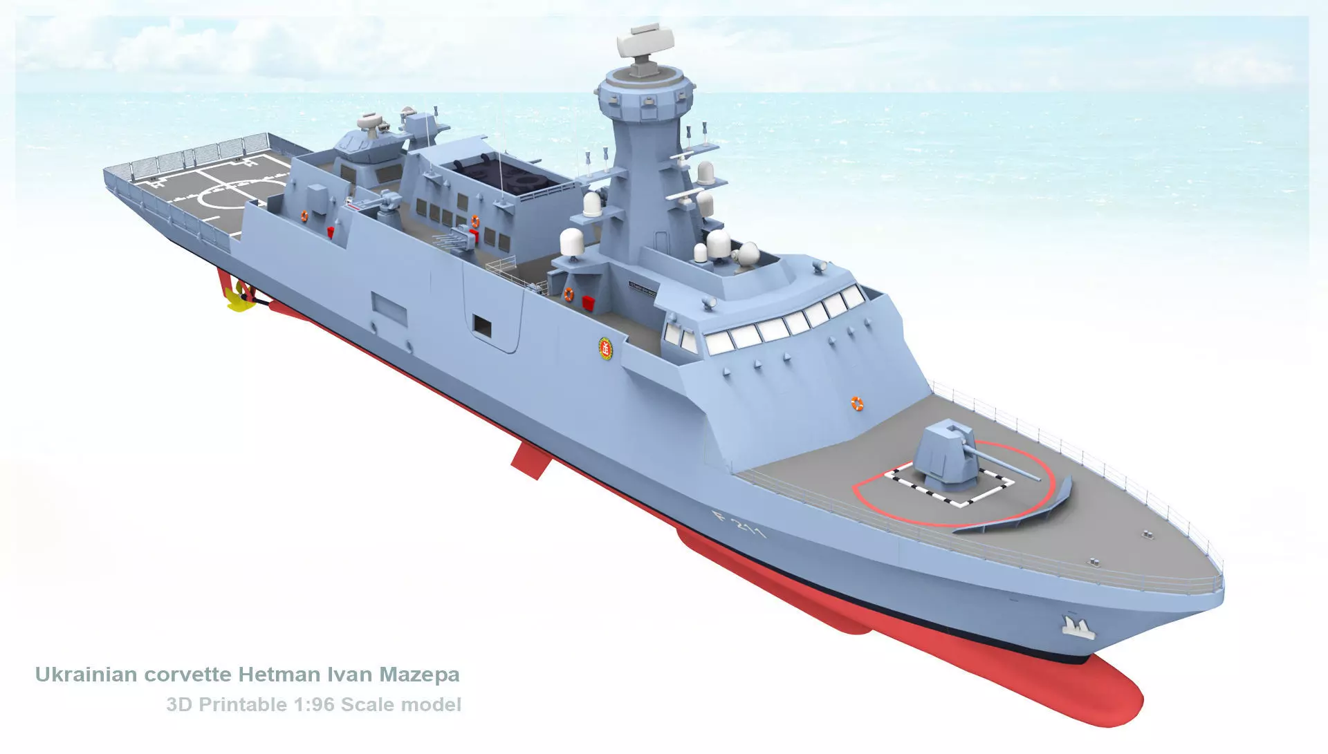 3D Printable&for RC Ukraine`s corvette into 1/96 scale / name: Hetman Ivan Mazepa *F 211Lenght - 99,56 m=9956 sm/ = 99560 mm:96=1037,0 mm