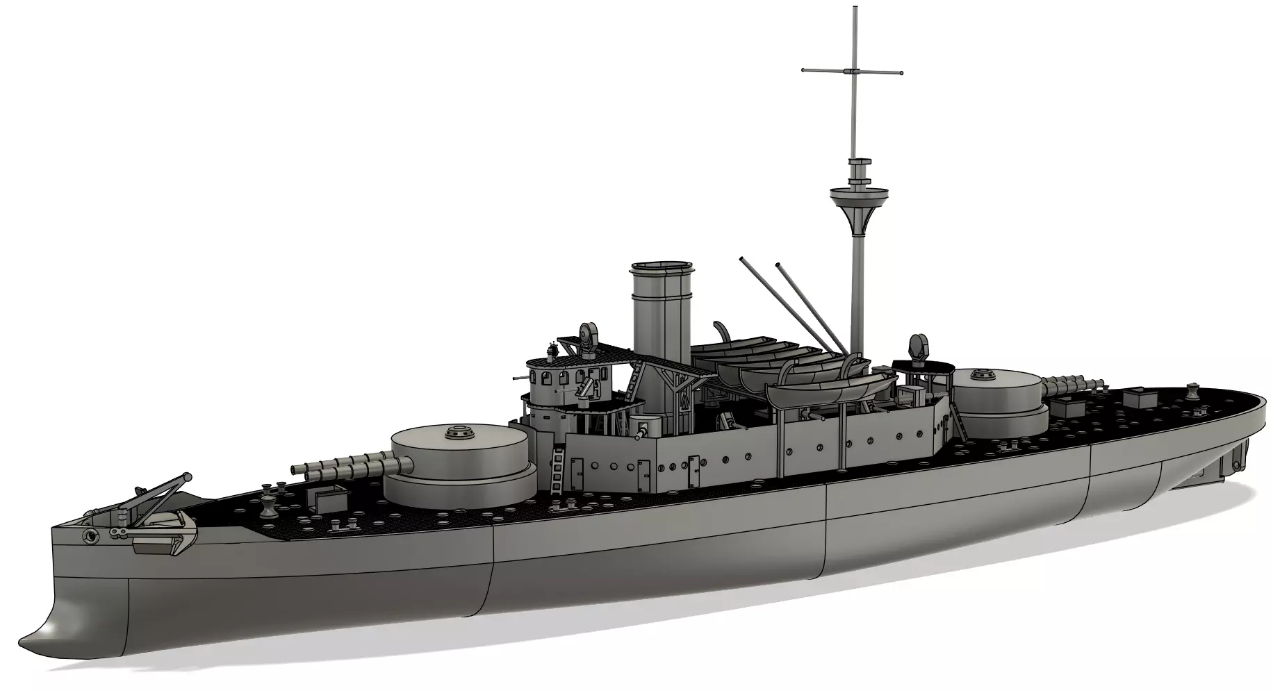 This 1/96 scale model is based on archival drawings of the USS Puritan (BM-1) coastal defense monitor built in 1882. Technically it was a “repair” of the original Civil War monitor ordered in 1872, however the ship was essentially a new build using very few parts from the original vessel. She saw service during the Spanish-American War, and was decommissioned for the final time in 1910.