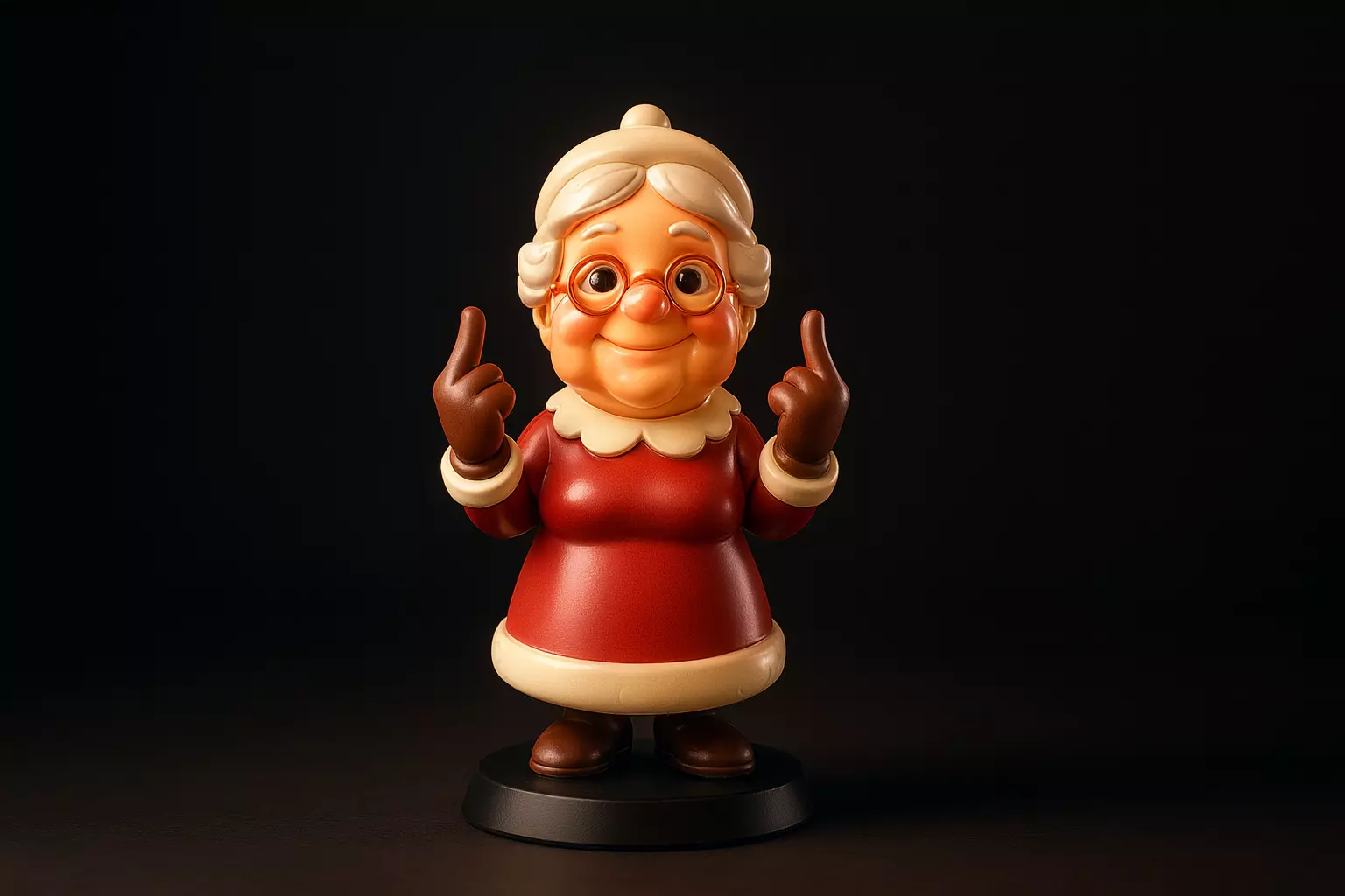 mrs claus figurine , middle finger decor , funny christmas statue , adult humor gift , cheeky holiday figurine , sassy mrs claus , 3d printed christmas decor , novelty holiday gift , humorous christmas ornament , funny festive decoration , quirky christmas display , adult gag present , bold holiday figurine , unique 3d print item , playful christmas humor , naughty holiday decor , humorous shelf sitter , christmas joke gift , funny holiday sculpture , cheeky christmas ornament