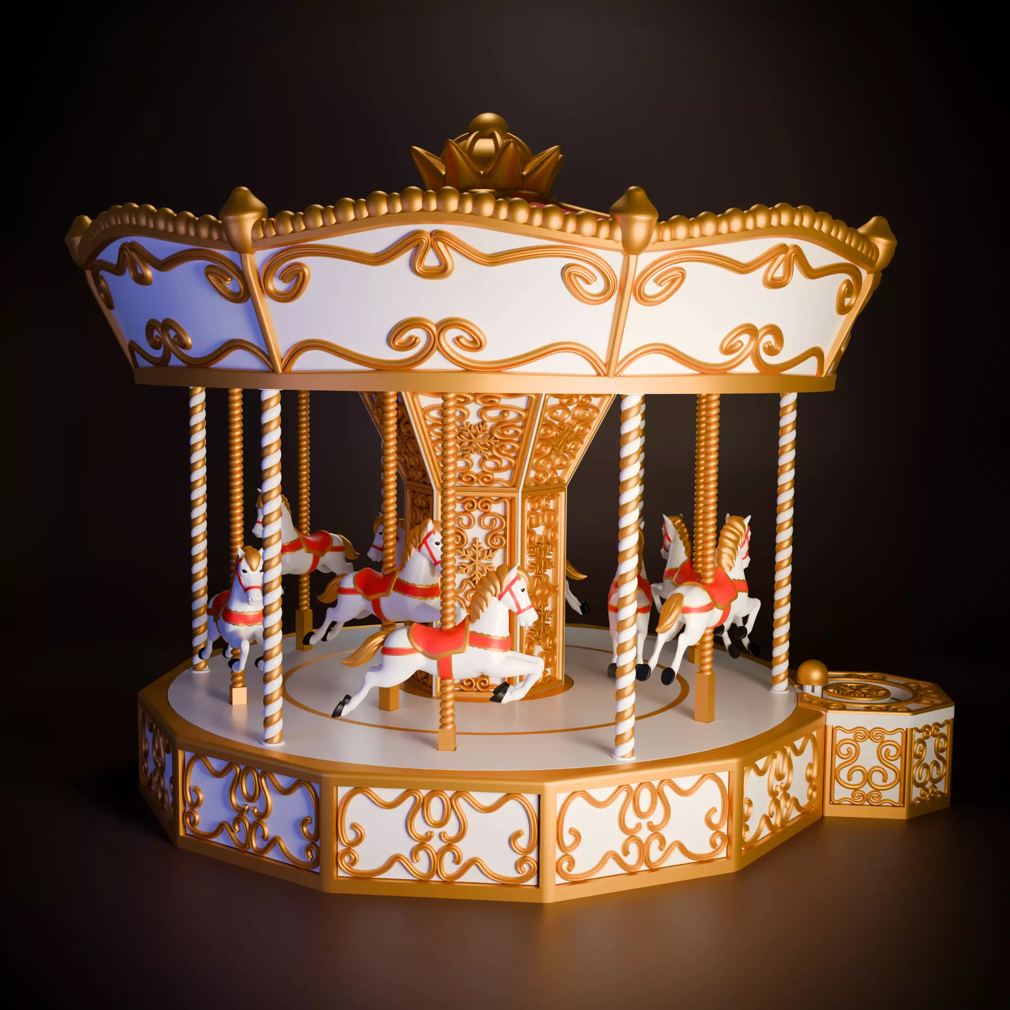 Discover the magic of the holiday season with this 3D-printable Christmas carousel, designed to be easy to assemble and enjoyable to use.The model features a fully functional mechanism that allows the horses to rotate around the carousel while moving up and down, just like a real miniature fairground ride.All parts are optimized for FDM printing, and you’ll find both the classic STL files and a multicolor 3MF version, perfect for multi-material printers to achieve a colorful result straight from the print.The internal mechanism is designed to be smooth, without the need for electronics. It can be operated manually.Perfect for a Christmas village, an animated decoration, or a festive centerpiece, this carousel brings a touch of magic and motion to your holiday scenes.