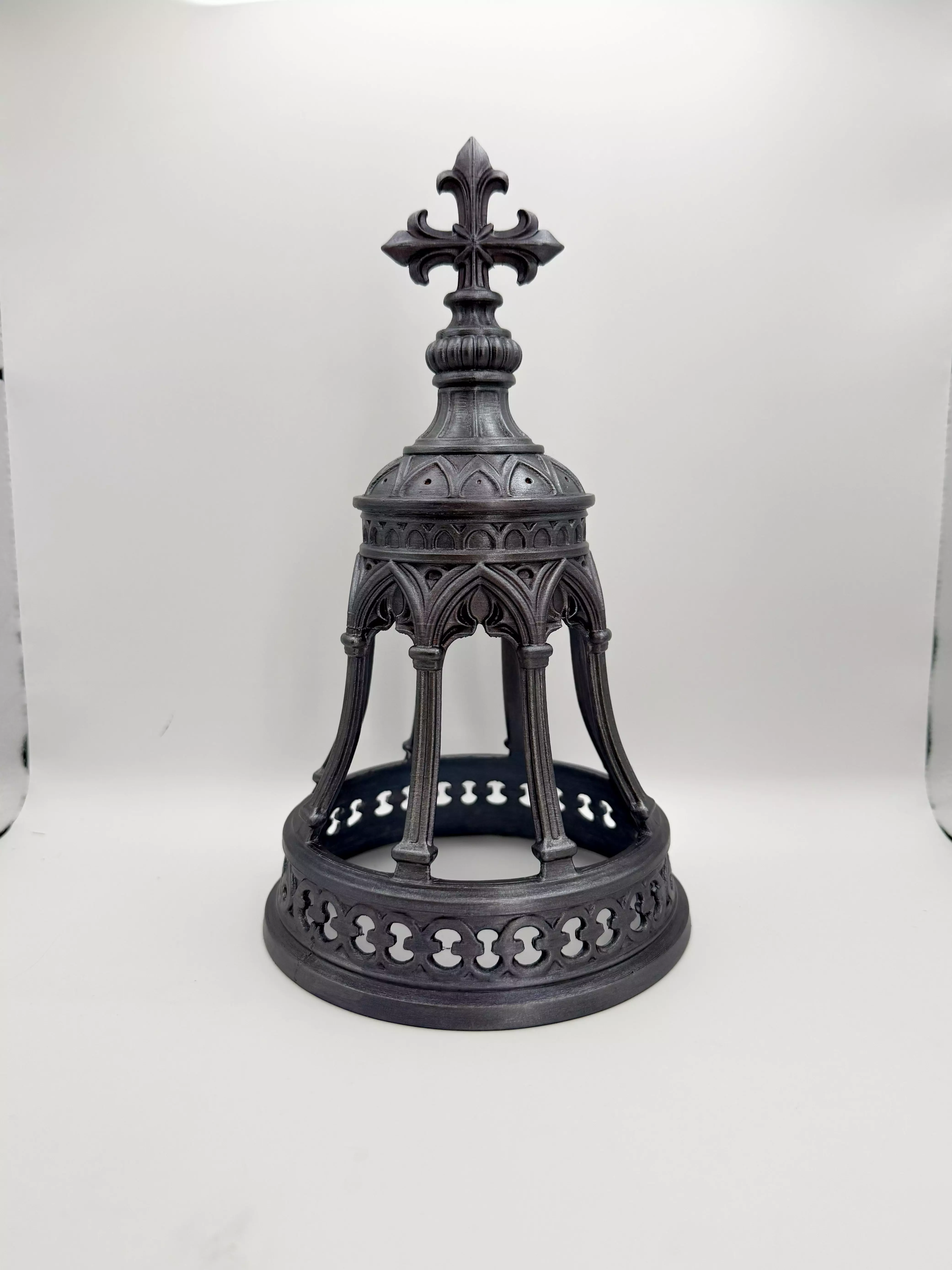 Gothic bell-shaped tea light cover. The layered structure casts dramatic shadows when illuminated, creating an enchanting atmosphere for holiday displays, fantasy interiors, or table décor.