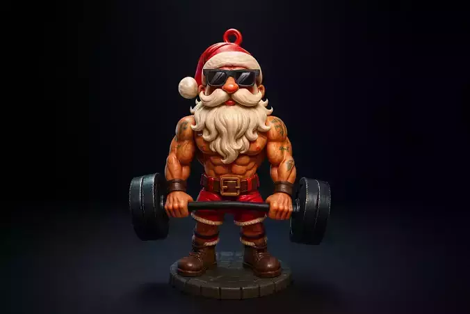 muscle santa, bodybuilding santa, christmas figurine, santa ornament, 3d print model, holiday decoration, buff santa claus, funny christmas decor, santa statue, christmas collectible, festive ornament, muscular santa, christmas novelty, holiday gift idea, santa sculpture, fitness santa, winter decor, santa weightlifter, holiday display piece, christmas 3d print
