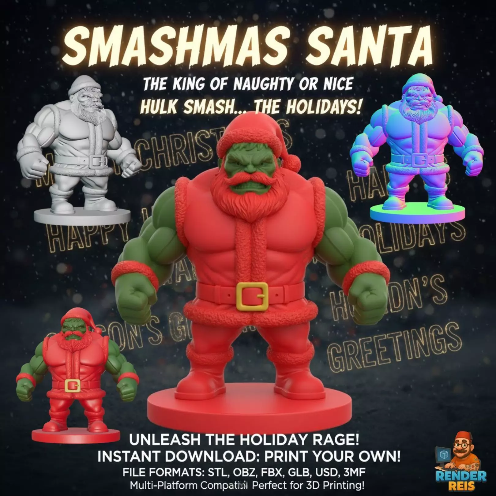 This original concept Santa figure, inspired by a Hulk-like aesthetic, blends exaggerated comic-style musculature with a humorous holiday theme. The oversized anatomy, expressive face, and bold red costume make it a strong choice for collectors and unique Christmas décor.