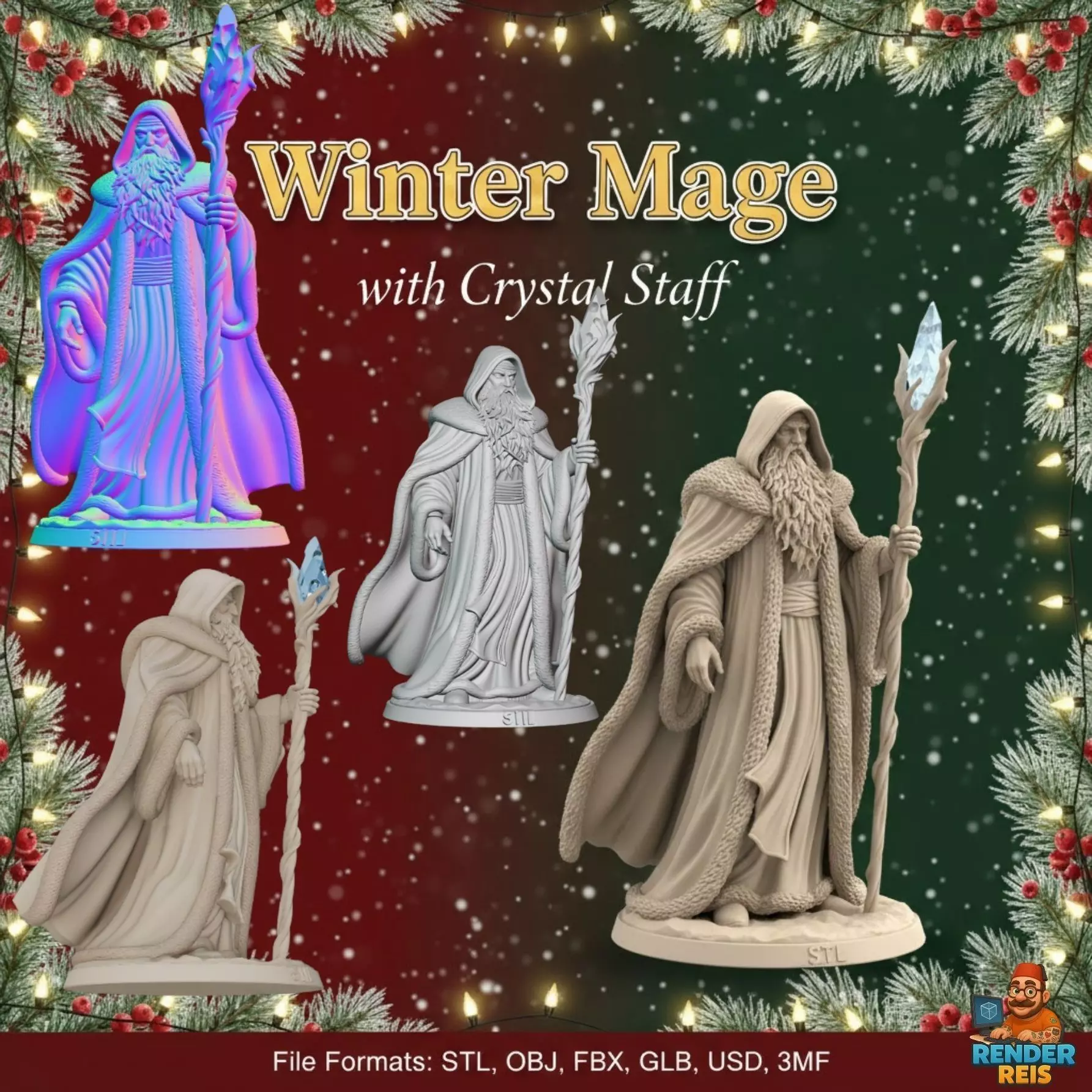 The Winter Mage embodies the frozen power of winter and the elegance of magic. Holding a shimmering crystal staff and wrapped in a fur-lined cloak, this miniature captures the essence of a high-fantasy wizard caught mid-spell.
