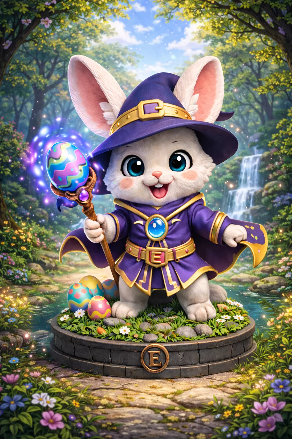 In one hand, the bunny holds a magical staff topped with a glowing Easter egg, surrounded by subtle magical effects that add energy and motion to the design. This creative combination of magic and Easter symbolism makes the model unique and highly memorable.