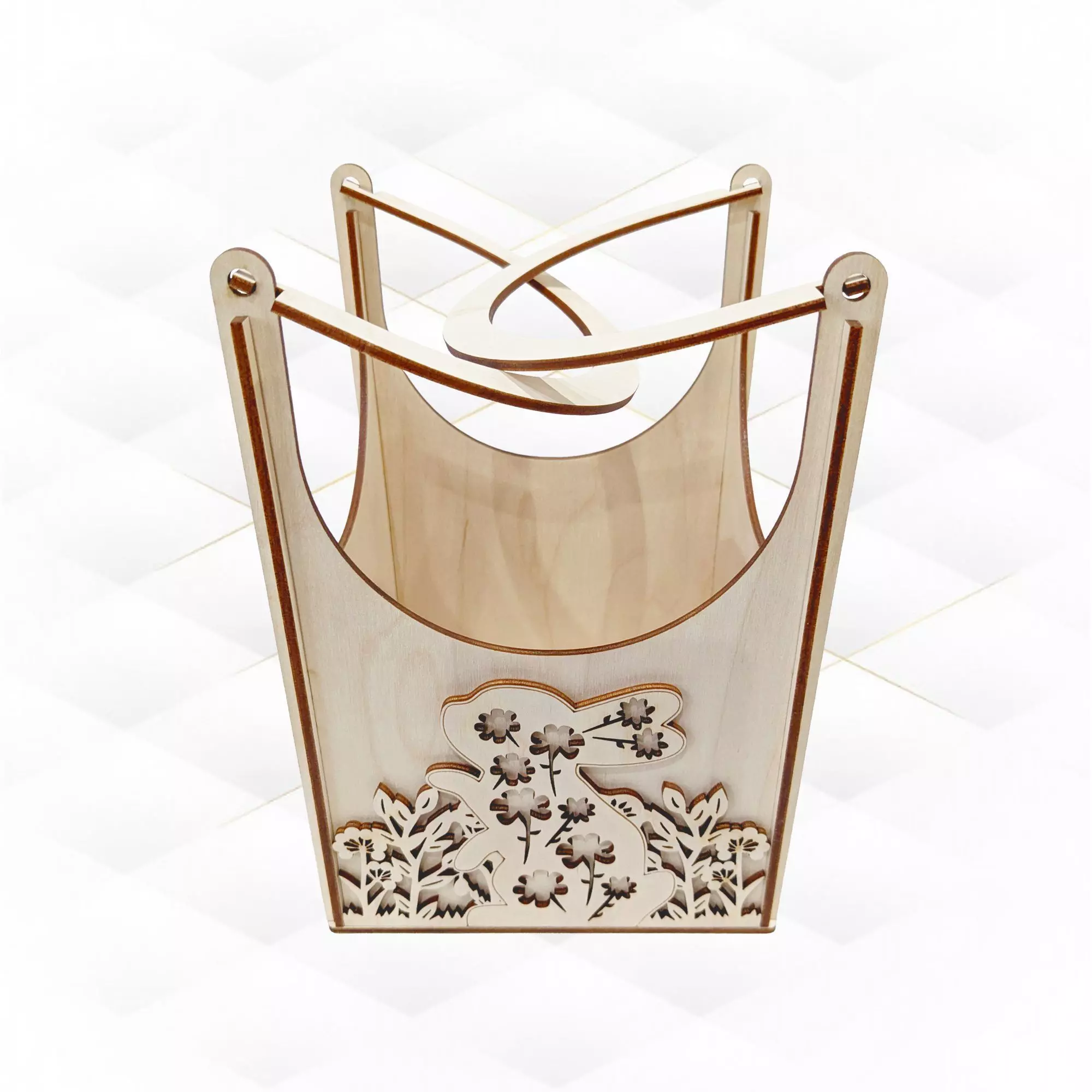 Gift Easter Basket Laser Cut Template, SVG DXF Bunny Flowers Design, Laser Cutting Model. Easter decor, laser cut pattern, box basket. Easter design, gift for her, cut model. Laser svg, laser dxf, engraving laser. Laser file, vector template, svg dxf files. Glowforge cut files, easter gift, eggs basket. Laser plan, cutting plan, laser project. Floral pattern, easter greeting, easter laser. Original, unique product design will help you create a stunning gift or product for your store. Universal product! It can be made from plywood (as in the photo), cardboard or other material. Additionally, painting in your favorite colors, you will receive an exclusive gift, well, just a gorgeous thing!