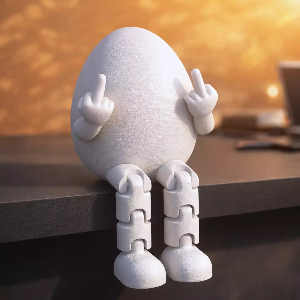 This articulated egg character features movable legs and expressive hands that say it all, no words needed! Perfect as a humorous Easter basket addition, an office desk gag gift, or a funny collectible for adults, this digital model brings personality and laughter to any space. Its simple yet expressive design makes it both easy to print and impossible to ignore. Whether gifted to a friend with a great sense of humor or displayed as a statement piece, it’s guaranteed to spark smiles and conversations.