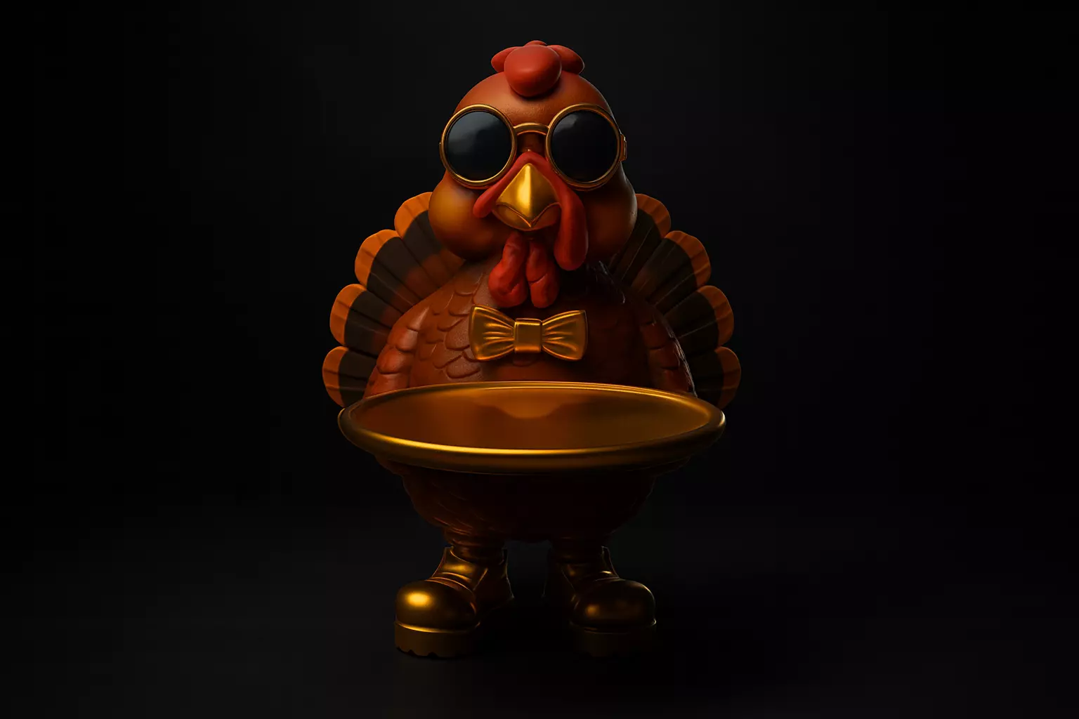Bring charm and humor to your Thanksgiving décor with this 3D printed Turkey Butler! Designed with personality and flair, this turkey features shiny gold accents, round sunglasses, a bow tie, and matching boots, holding a serving tray that’s perfect for candies, keys, or small treats. Whether displayed on your dining table, entryway, or kitchen, it’s sure to be a conversation starter and a festive centerpiece. Ideal for Thanksgiving, fall gatherings, or as a unique gift for family and friends who love quirky holiday décor.