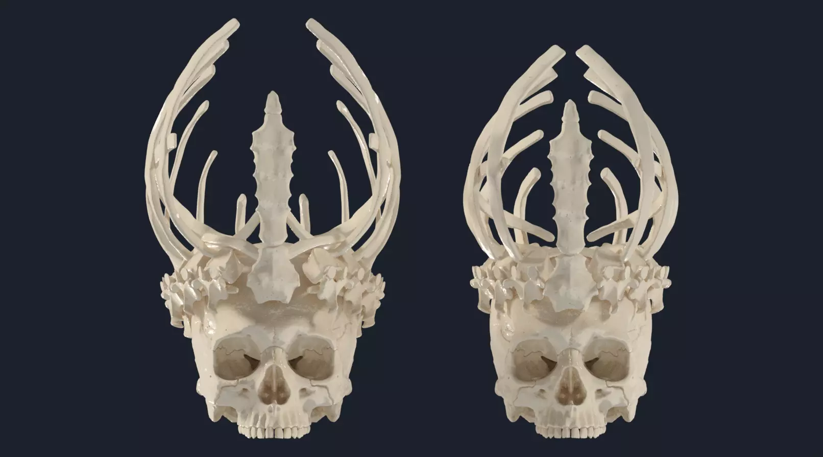 I present to you two crown designs that I made last year from bones with anatomically correct(ish) shapes and sizes. Both made up of vertebrae, ribs and a sternum.