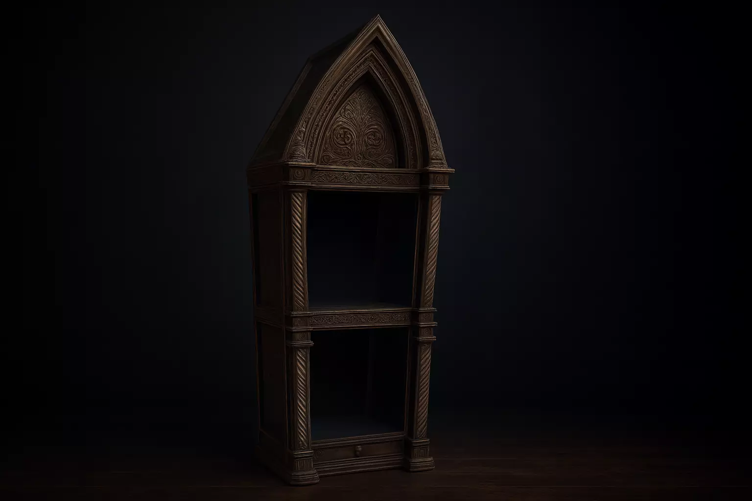 gothic decor, gothic shelf, cathedral display, gothic cabinet, fantasy shelf, medieval decor, dnd display, tabletop gaming accessory, gothic miniature, gothic furniture, 3d printed decor, gothic home decor, fantasy collector shelf, medieval style display, gothic architecture, gothic style, unique gi