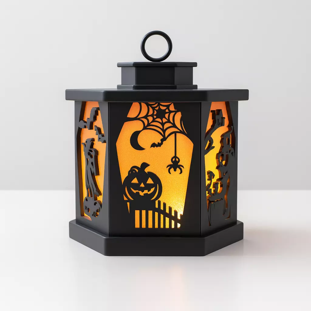This 3D STL file lets you 3D print a Halloween tea light holder lantern with intricate cutout panels showcasing classic spooky scenes: a flying witch, a grinning pumpkin under a spiderweb, and a skeletal figure in the moonlight. Designed to fit LED or tealight candles, the lantern creates a glowing haunted house atmosphere, casting eerie silhouettes around your room. Perfect for Halloween parties, haunted house decor, table centerpieces, or gothic home accents, this design combines festive fun with elegant detail. Easy to print and assemble, you can create a full set or print your favorite panels to mix and match.