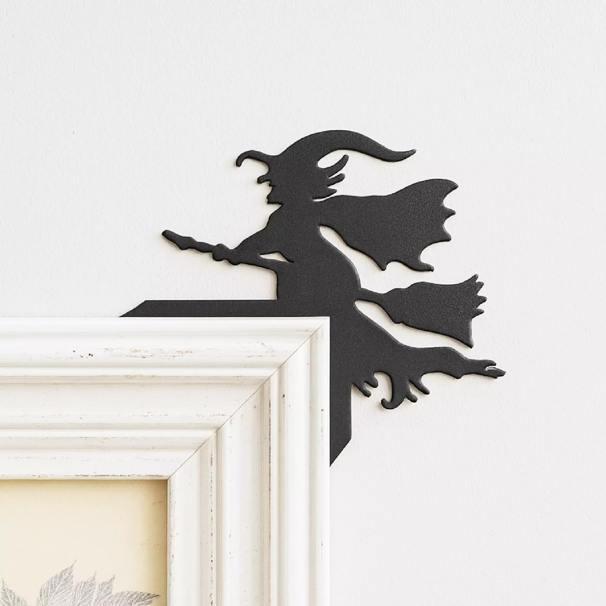 Add a magical touch to your doorway with this flying witch-shaped Halloween door corner decor, the perfect blend of spooky and cute!