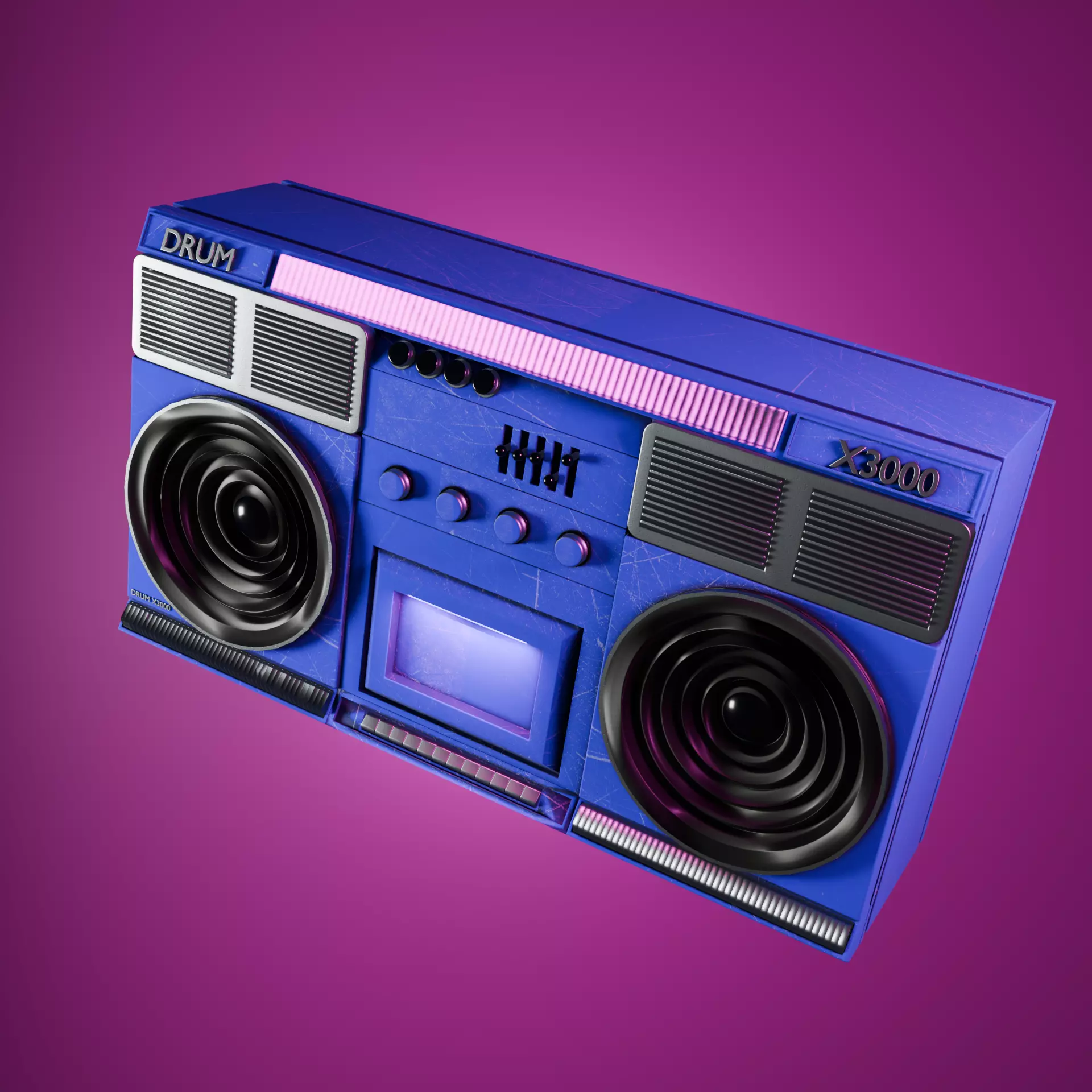 Retro-Futuristic Boombox Magnet – A stylish 3D model of a vintage-inspired blue boombox with a magnetic back, perfect for fridges, lockers, or decor.