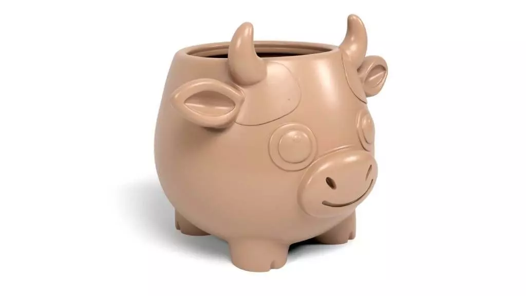This cow flowerpot features a playful and cute design, incorporating a cartoonish style with exaggerated features such as bulging eyes and a friendly smile.