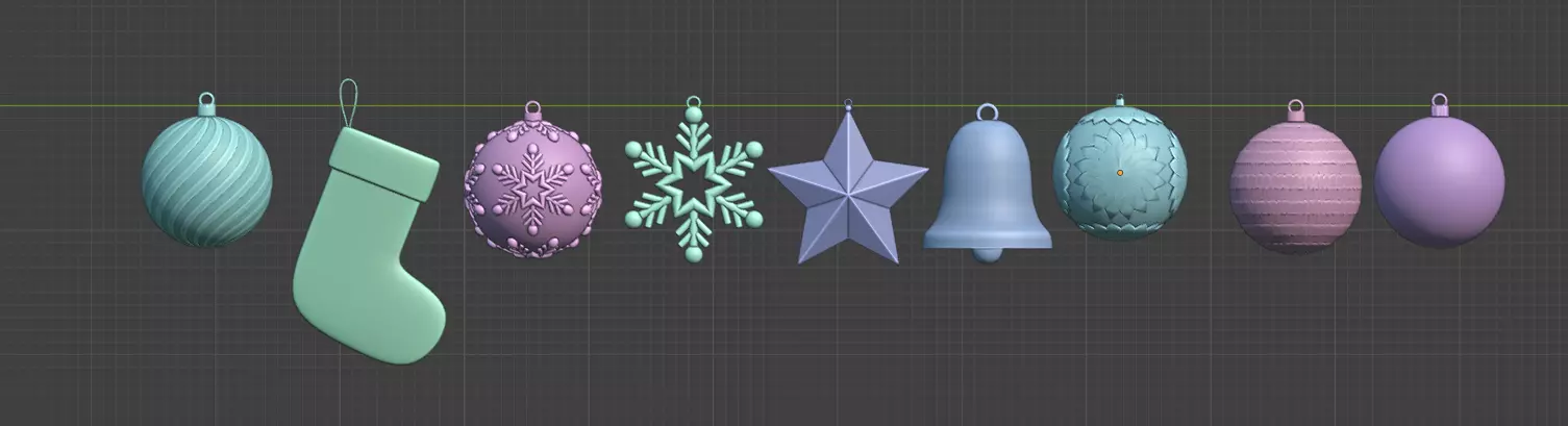 Q: What file formats are provided for the ornament set?A: The Event Ornament Set comes in STL, OBJ, and FBX formats for easy use with a wide range of 3D printers and software.