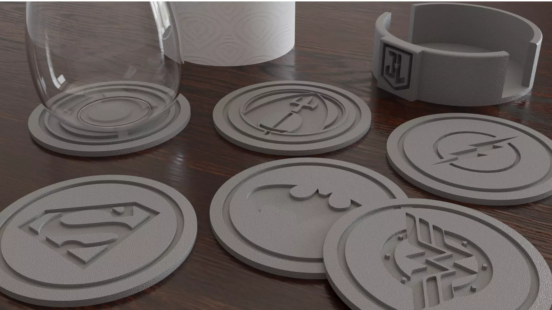 6 different superhero coaster .stl files + a custom Justice League case. These coasters are perfect for adding detail and personality to your home decor. You can also mix and store the Justice League coasters face-down and let your guests pick a random superhero!