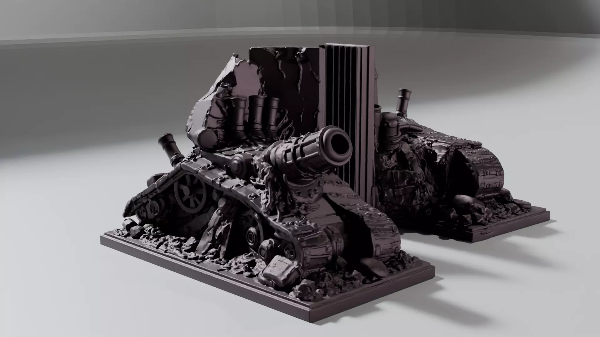 Designed as a left + right bookend pair, the scene frames your books with a dramatic “wreck site” silhouette while staying sturdy and printable. Perfect for collectors, tabletop vibes, or anyone who wants their shelf to look like the aftermath of a glorious mechanical catastrophe.