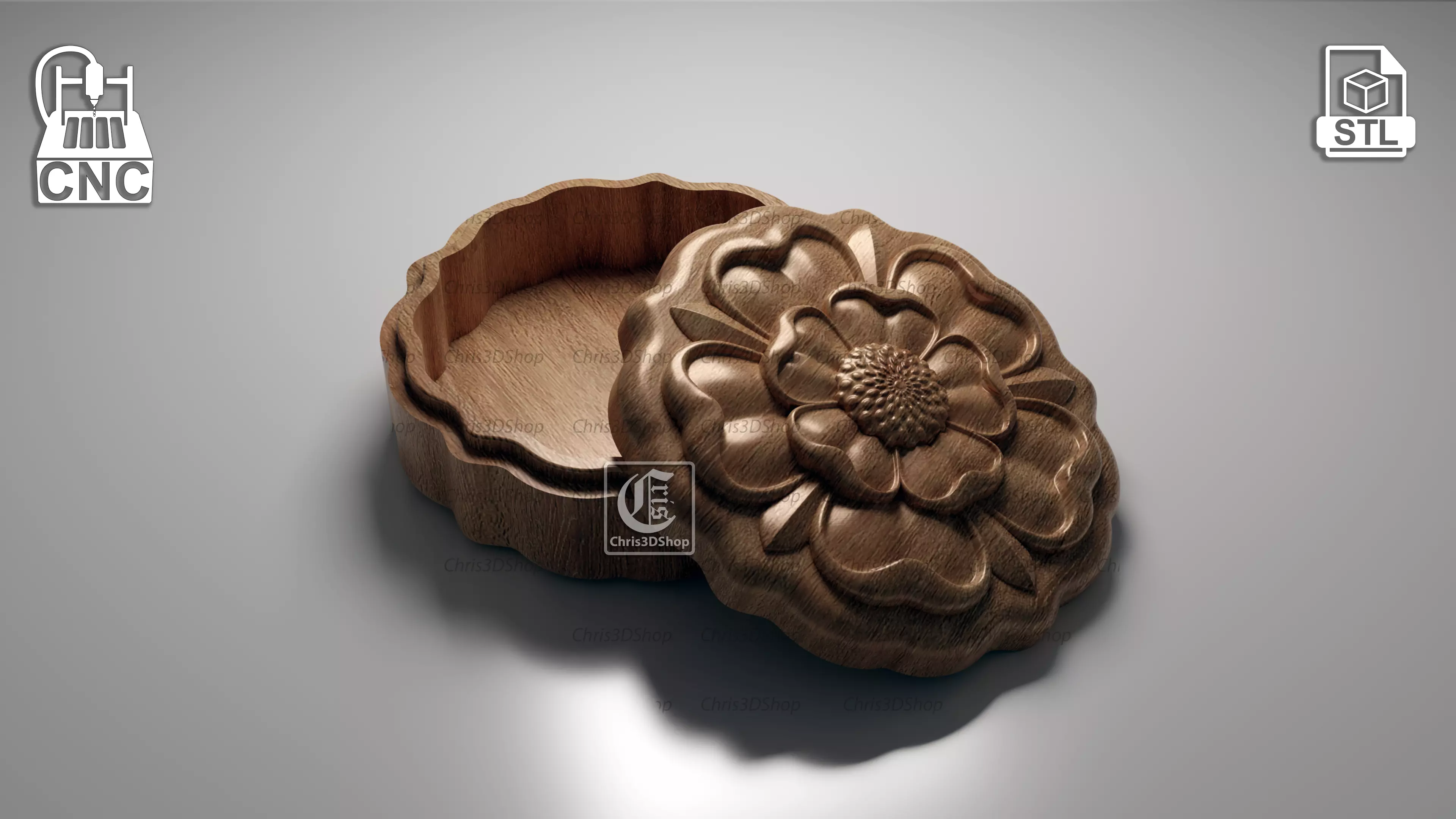 Tudor Rose Jewelry Box - 3D STL for CNC and 3D PrinterThe model can be used with Aspire, Artcam, Vcarve, Carveco, or any other software that allows you to import the stl file format.