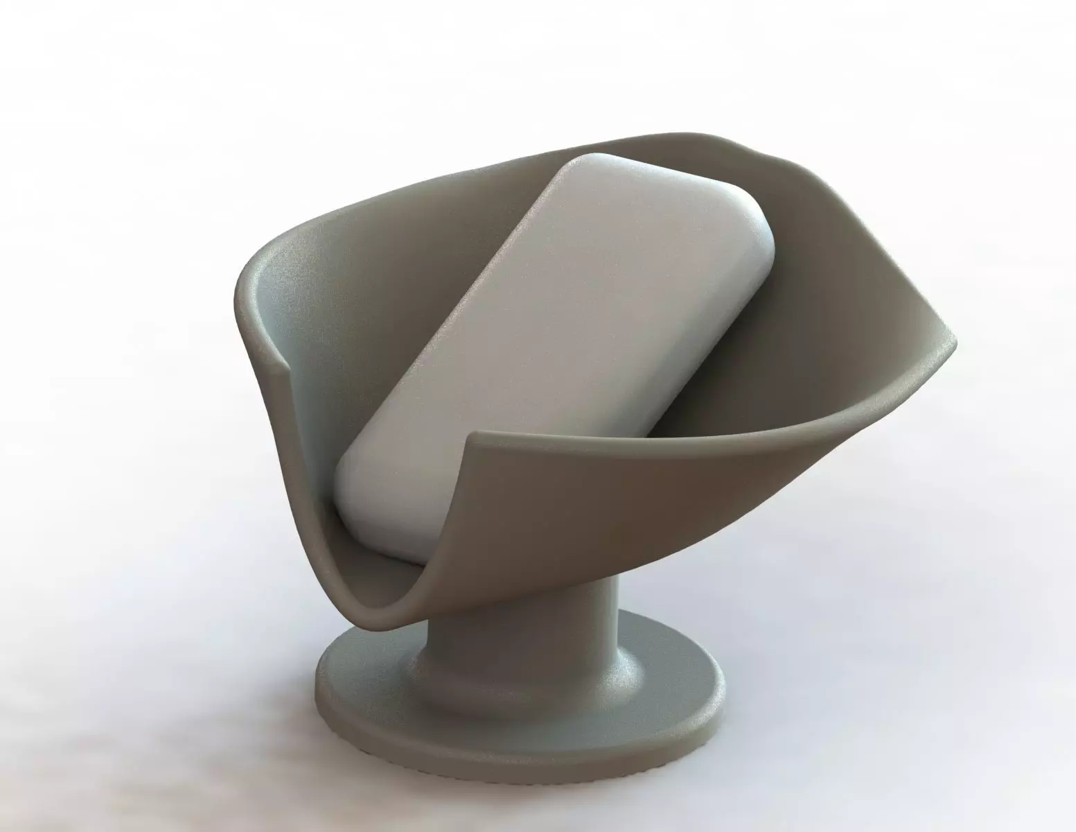 The raised bowl shape with a smooth inner surface securely holds the soap, while the angled groove guides water outward and down. A stable pedestal base ensures good balance on sinks, shelves, or countertops. The minimalist and sculptural form makes the soap dish suitable for modern, Scandinavian, or minimalist bathroom interiors.