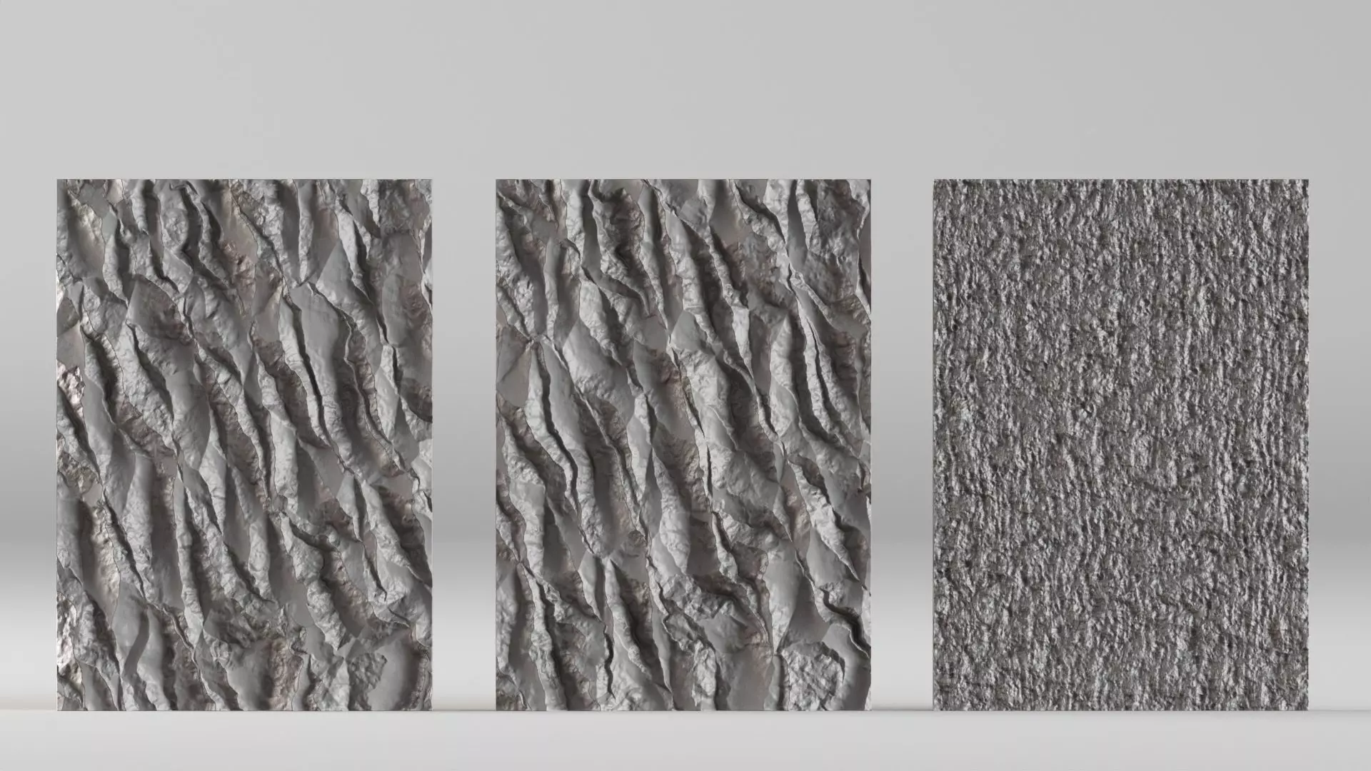 This pack includes three scan-based concrete relief panels optimized for 3D printing, featuring authentic depth, cracks, and weathered surface variation.