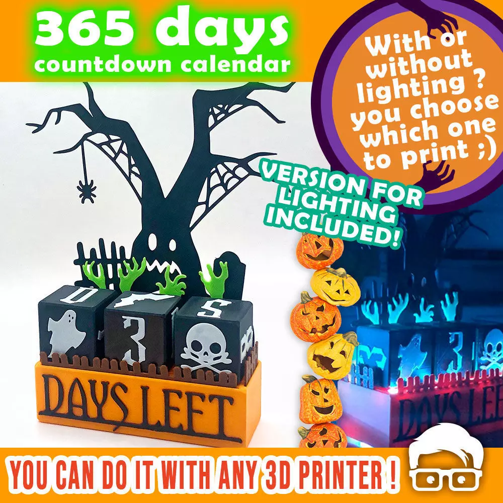 365 DAYS HALLOWEEN COUNTDOWN CALENDAR, VERSION FOR LIGHTING INCLUDED (LED, LAMP, HOME DECOR, PUMPKIN, SCARY, CUTE, KIDS,TRICK OR TREAT, MONSTER, CANDIES, CANDY, HORROR, DECORATION) BY AM-MEDIA