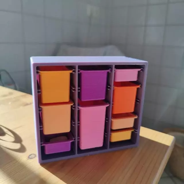 Keep your workspace neat and stylish with this 3D modular desktop organizer, designed for offices, workshops, and hobby spaces! Featuring adjustable drawer compartments, this organizer allows you to store everything from pens and office supplies to screws, tools, and craft materials. Inspired by IKEA’s minimalist style, it offers a sleek and professional look while maintaining practical functionality. This STL digital file is optimized for 3D printing, allowing you to customize and print your own perfect storage solution based on your needs. Whether at home or work, this smart storage box will help you declutter and enhance your productivity!