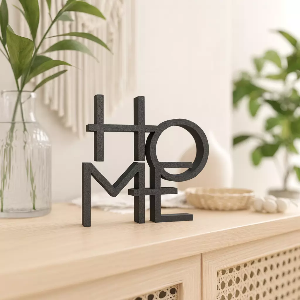 Elevate your space with this stunning 3D “HOME” word sign – where modern typography meets heartwarming charm!