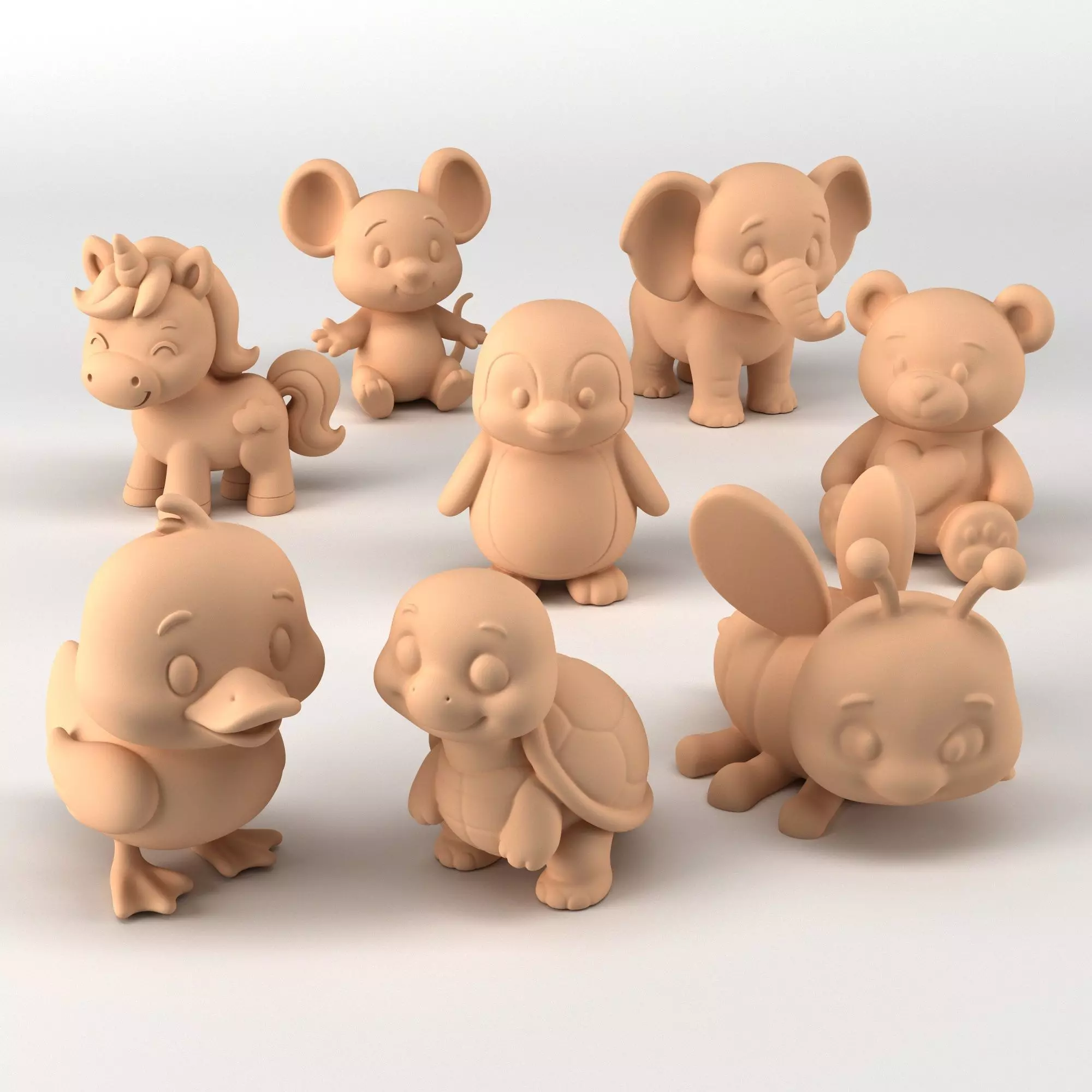This delightful collection features eight charming animal figurines designed for 3D printing, perfect for craft lovers, collectors, and children's decor. The set includes:• Unicorn• Mouse• Elephant• Bear• Penguin• Duck• Turtle• BeeEach model is crafted in a cute, cartoonish style, ideal for painting and personalizing. Provided in high-quality .STL format, these files are compatible with most 3D printers, ensuring a smooth printing experience with detailed features.Ideal For• Create unique, handmade gifts or personalized items.• Home decor, toys, or creative projects.Features• High-resolution .STL files• Easy to print with minimal supports• Perfect for customization and paintingBring these adorable characters to life with your 3D printer!