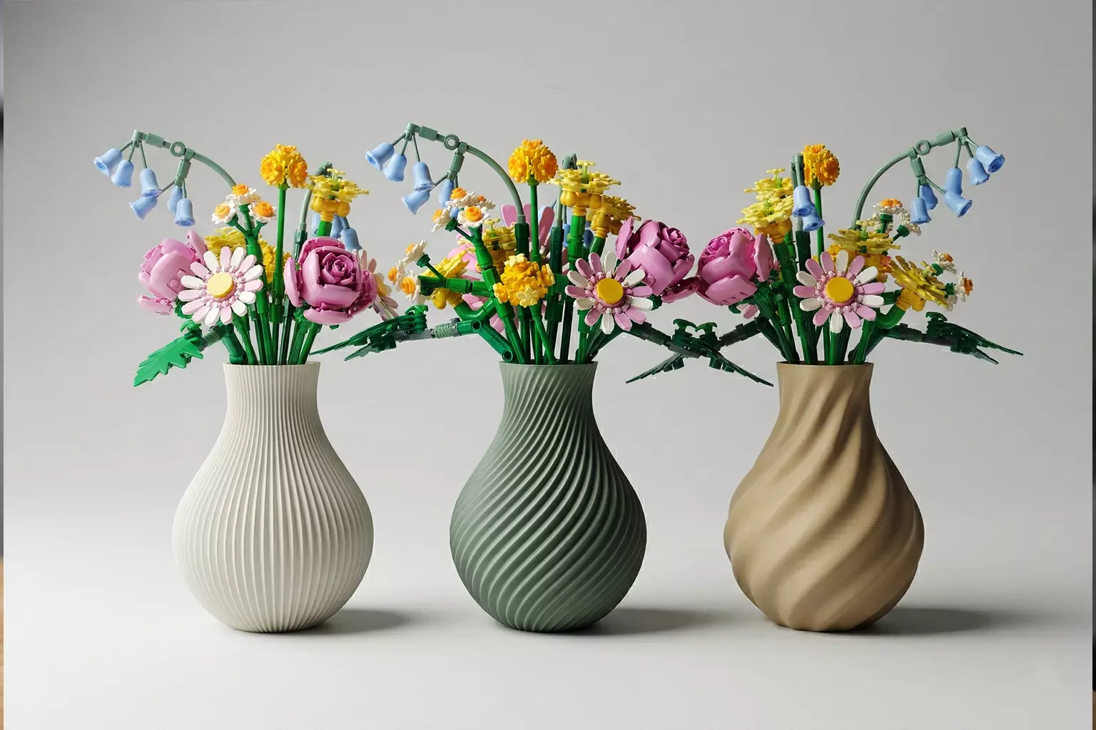 Bring your brick-built flower bouquets to life with this modern set of 3 ribbed vases, designed to display construction toy flowers in a clean and minimal way.