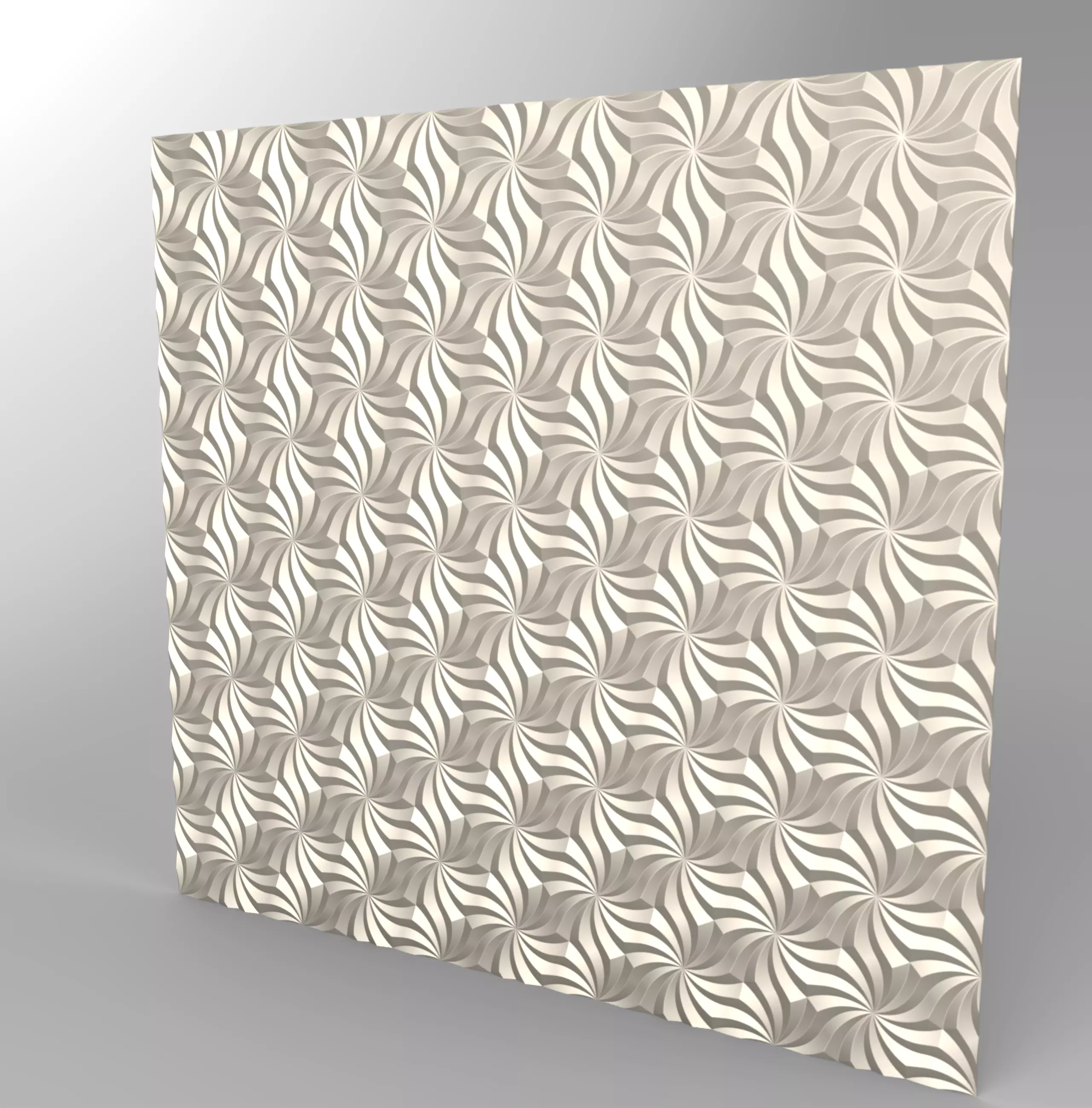 OverviewHighly detailed 3D model of a modern decorative wall panel, often known as the 'Anatolia' pattern. This geometric, swirling design is perfect for interior architectural visualization, contemporary decor projects, and 3D printing applications. The model is seamless and tileable, allowing for easy placement over large wall surfaces.