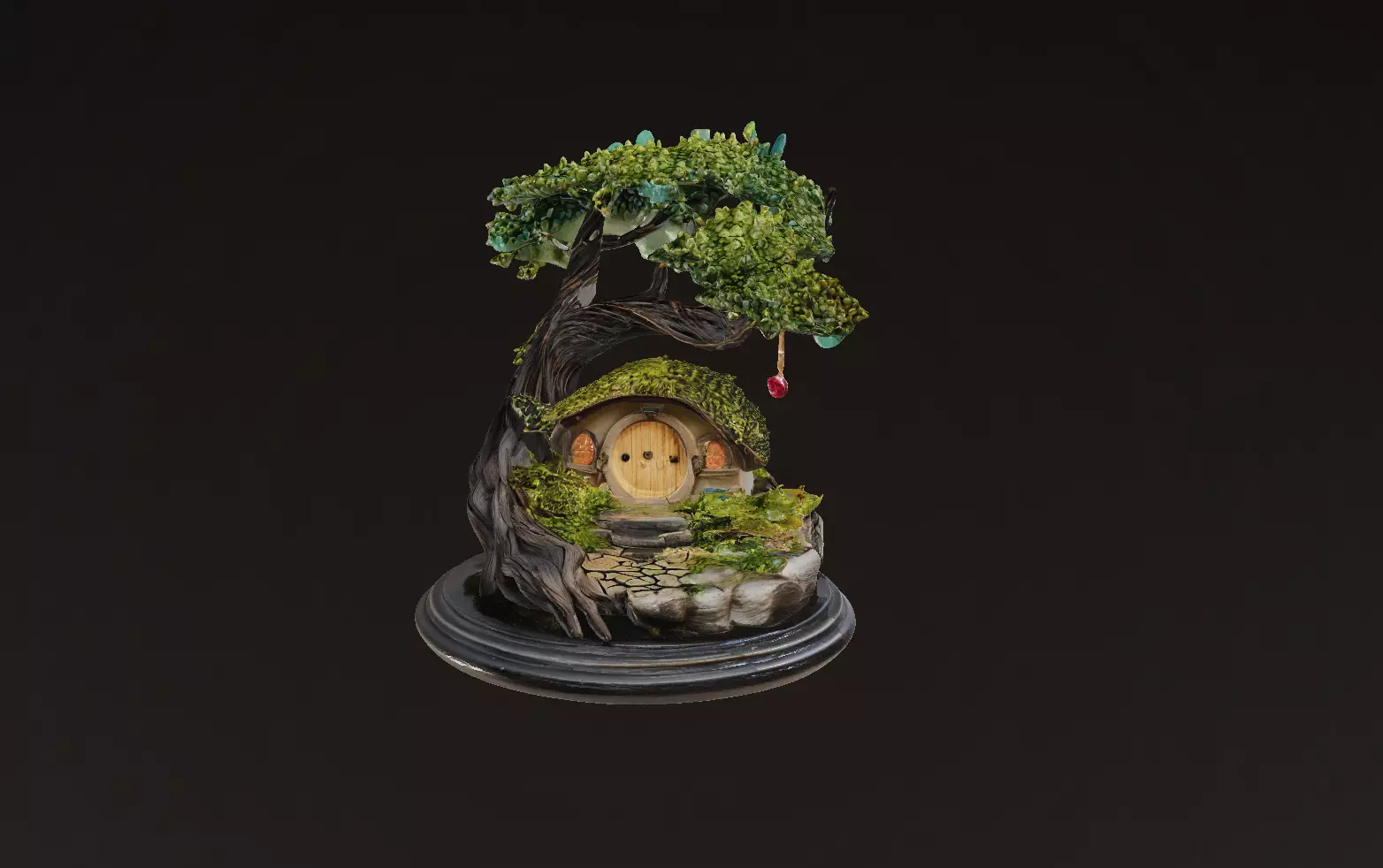 This premium fantasy tree-house miniature is designed specifically for high-quality 3D printing. The model features a charming round-door woodland home nestled beneath a stylized, twisted tree canopy, complete with organic textures, stone pathways, moss-like details, and ornamental elements. Every component is crafted to deliver a strong visual presence when printed in resin or FDM.