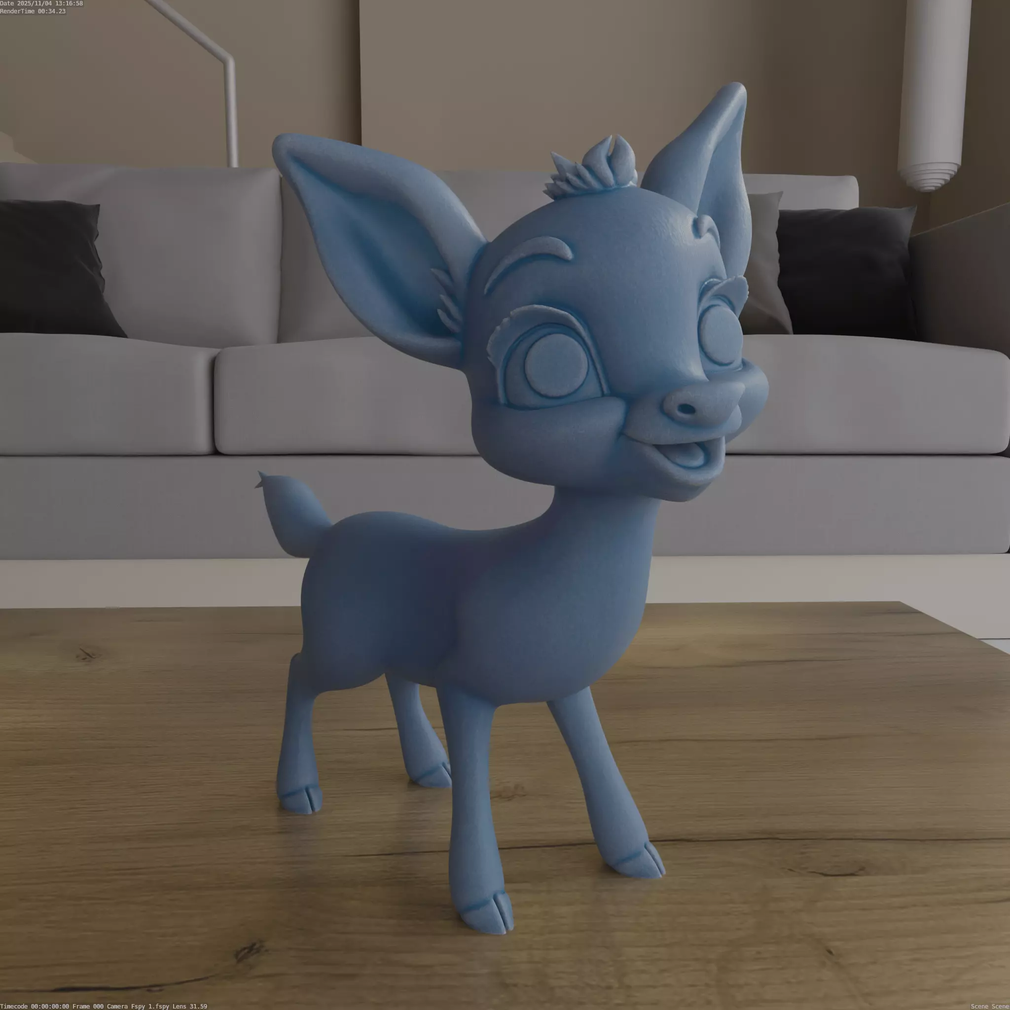 Design ConceptThe model exhibits a cute, expressive cartoon deer designed with playful and exaggerated features, perfect for adding a touch of whimsy.