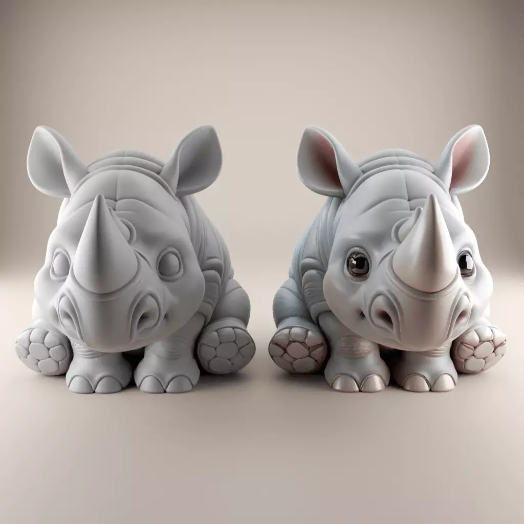 Design ConceptThis adorable rhino pair is designed to capture the playful and curious essence of baby rhinos. With exaggerated features and large expressive eyes, these models are a delightful blend of cuteness and realism, perfect for displaying.