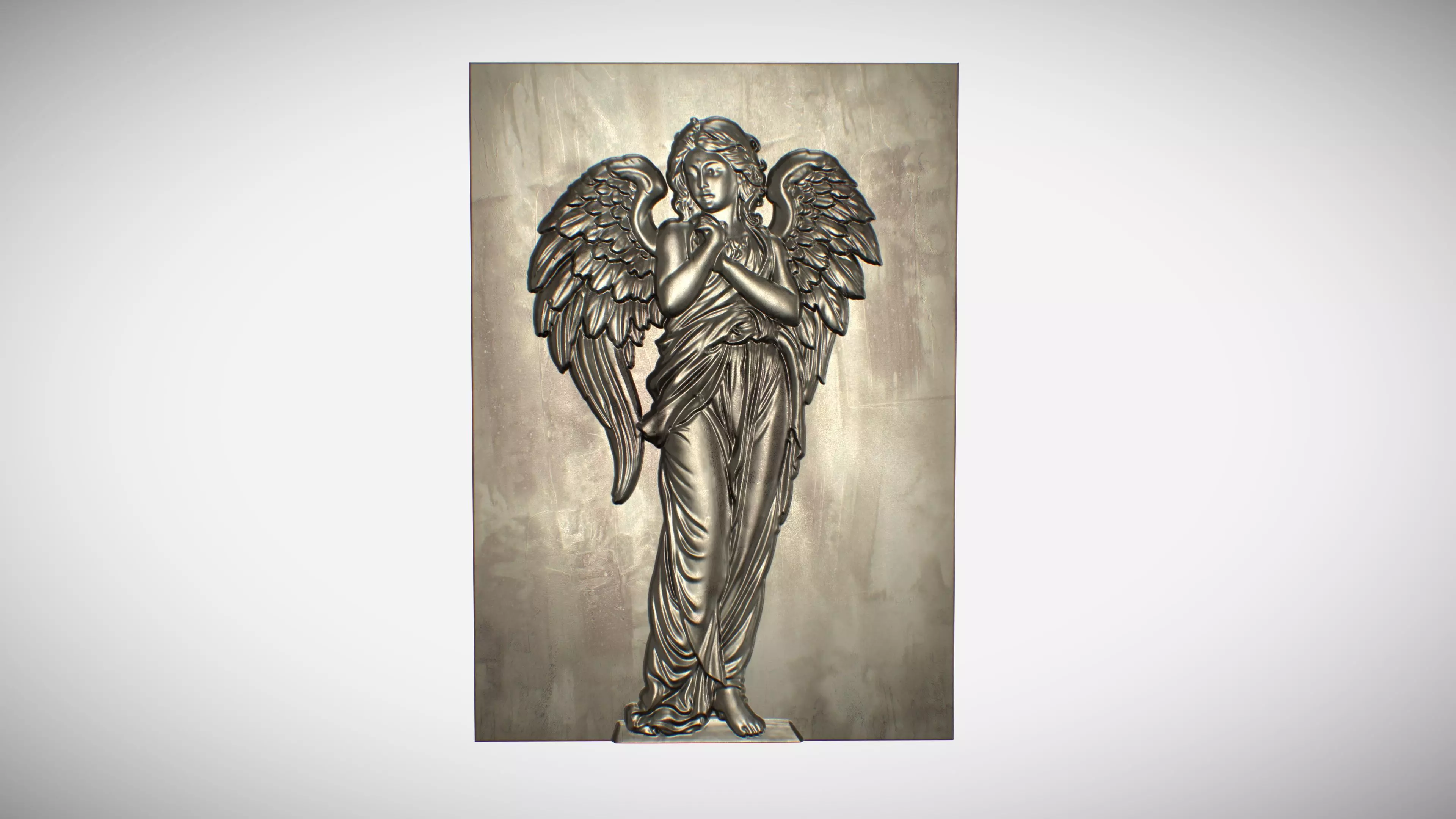 This detailed bas-relief panel features a graceful angel figure with flowing drapery and intricately sculpted wings, designed to create depth, softness, and a refined artistic presence. The composition is vertically balanced, making it ideal as a statement wall piece in luxury interiors.