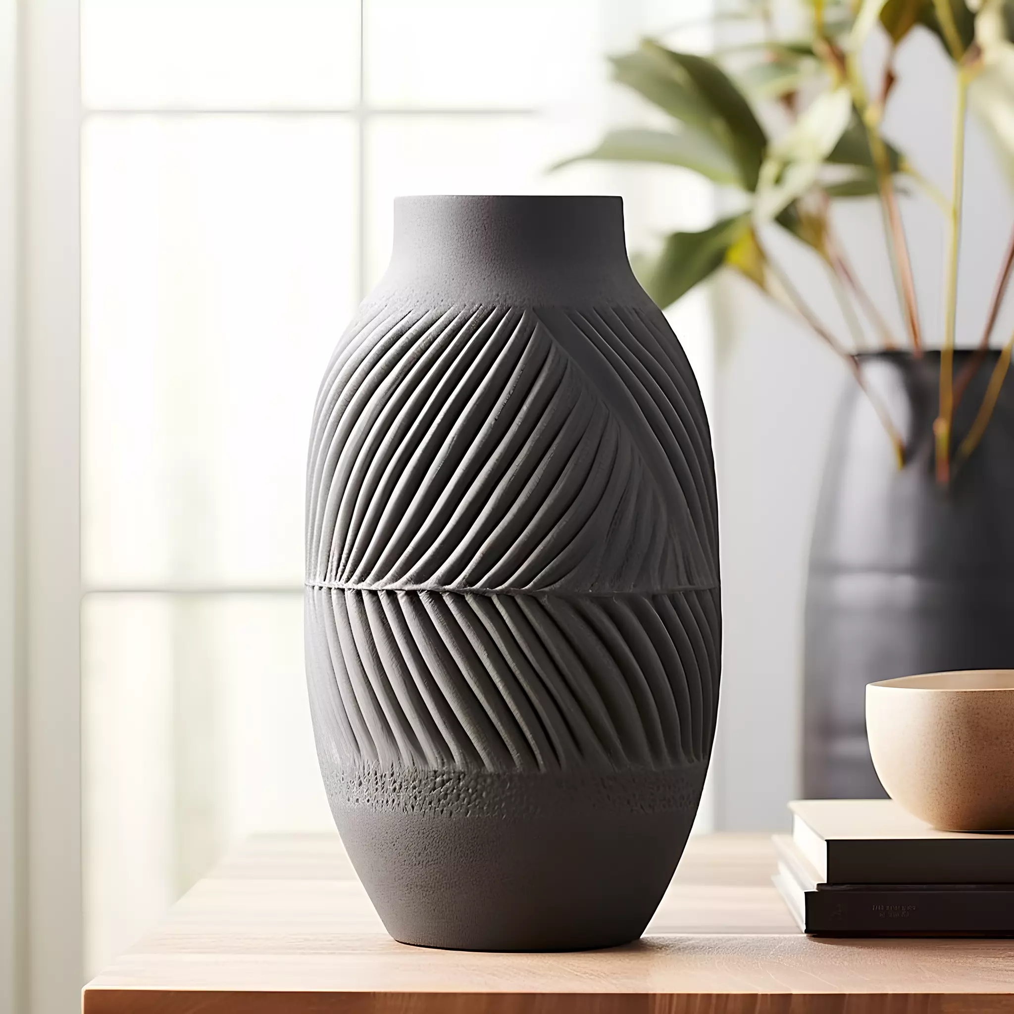 The Barbagia Vase is a celebration of nature’s raw beauty fused with modern artistry, expertly crafted to make a statement in any decor. Its carefully sculpted spirals are reminiscent of ancient rock formations or driftwood smoothed over time, bringing an organic yet contemporary touch to interiors. The charcoal-gray tone not only enhances its striking silhouette but also offers a neutral base that blends seamlessly with a variety of color schemes and textures.