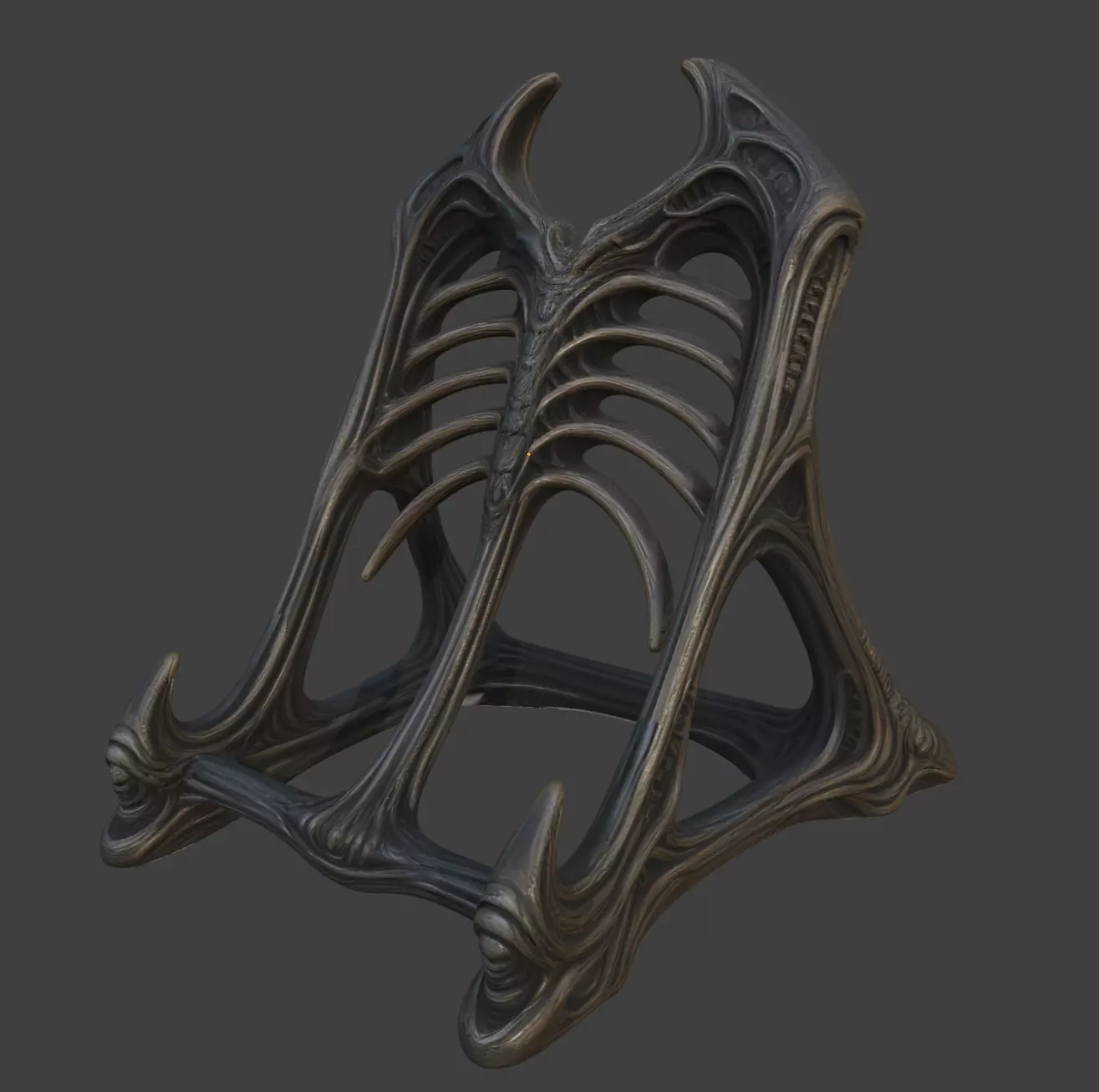 The Biomechanical Ribcage Book Stand for holding grimoires, artbooks, tablets, or display pieces, it transforms any shelf or desk into a biomech shrine.