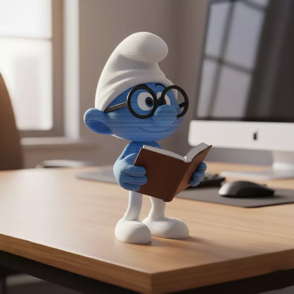 Design ConceptThis 3D printed model represents Brainy Smurf, a classic character from the well-loved Smurfs series. He's depicted holding a book, showcasing his intellectual persona and love for reading.