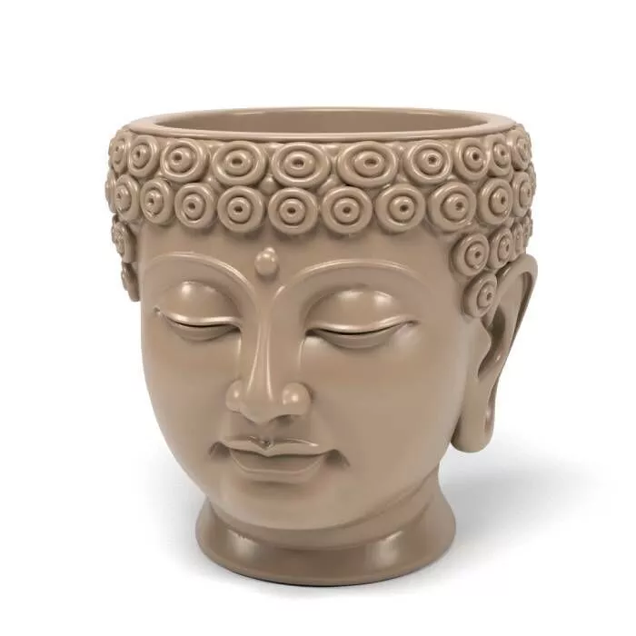 The Buddha pot is designed to bring serenity and peace to any environment with its calm and gentle expression. The intricate detail on the hair and the smooth, serene face reflect traditional artistic motifs, making it a perfect fusion of art and function.