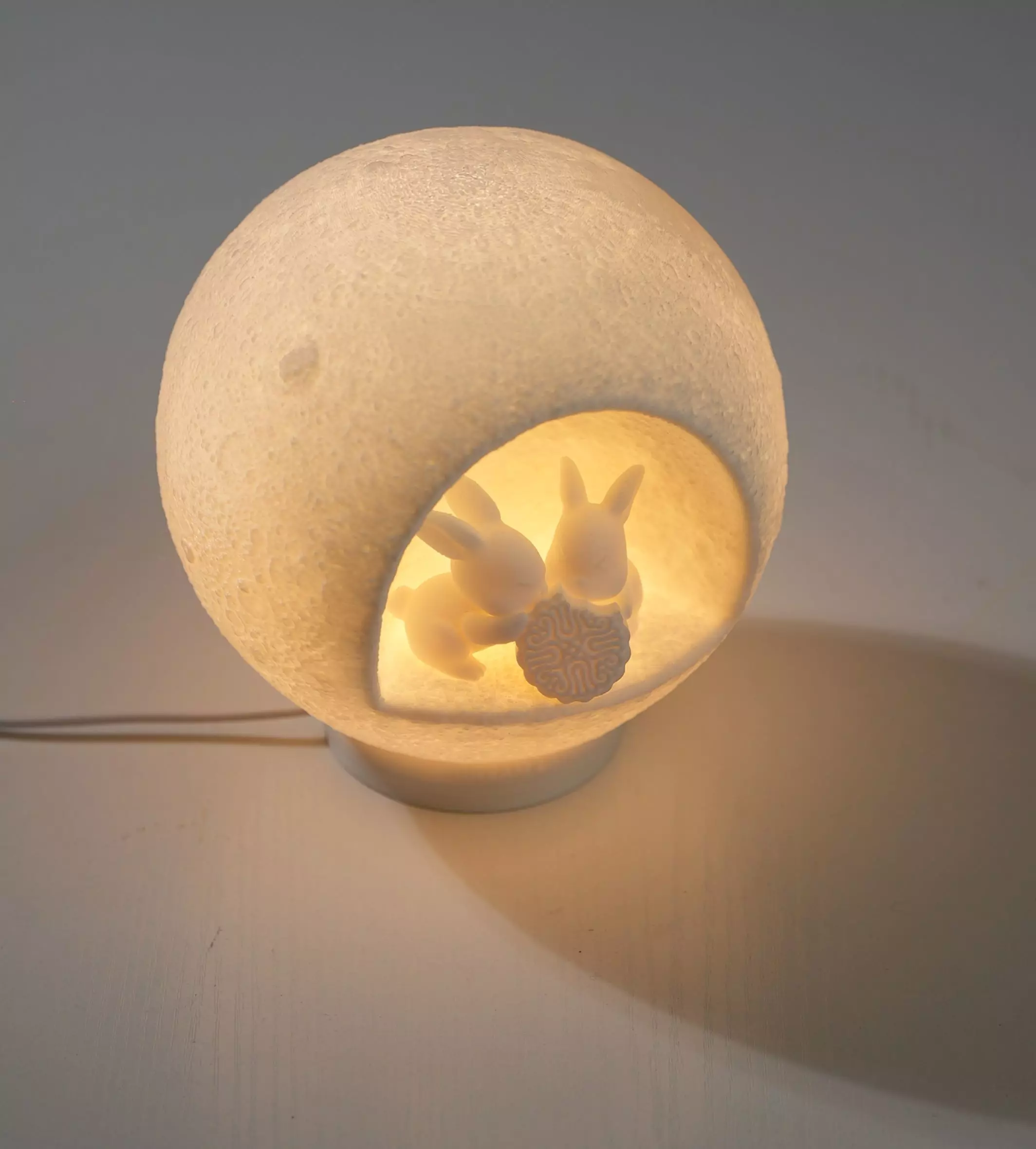 3D model descriptionIntroducing Bunny's Moonlight Feast, a 3D-printed moon lamp that captures the warmth and magic of a Mid-Autumn night! This design features two adorable bunnies sharing a mooncake inside a beautifully textured moon.The lamp is designed to work seamlessly with the Bambu LED Lamp - MH001, making it easy to create a cozy glow for your home or as a meaningful gift.Highlights:A detailed and charming design perfect for any space.Functional and easy to assemble with the Bambu LED Lamp - MH001.A unique combination of art and practicality.