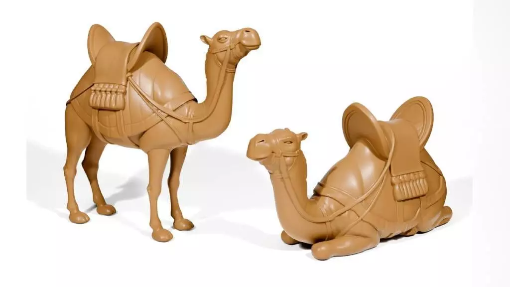 The camel models are designed with attention to realistic details, showcasing both a standing and sitting pose. This artistic design captures the essence of these desert animals while ensuring simplicity for printing.