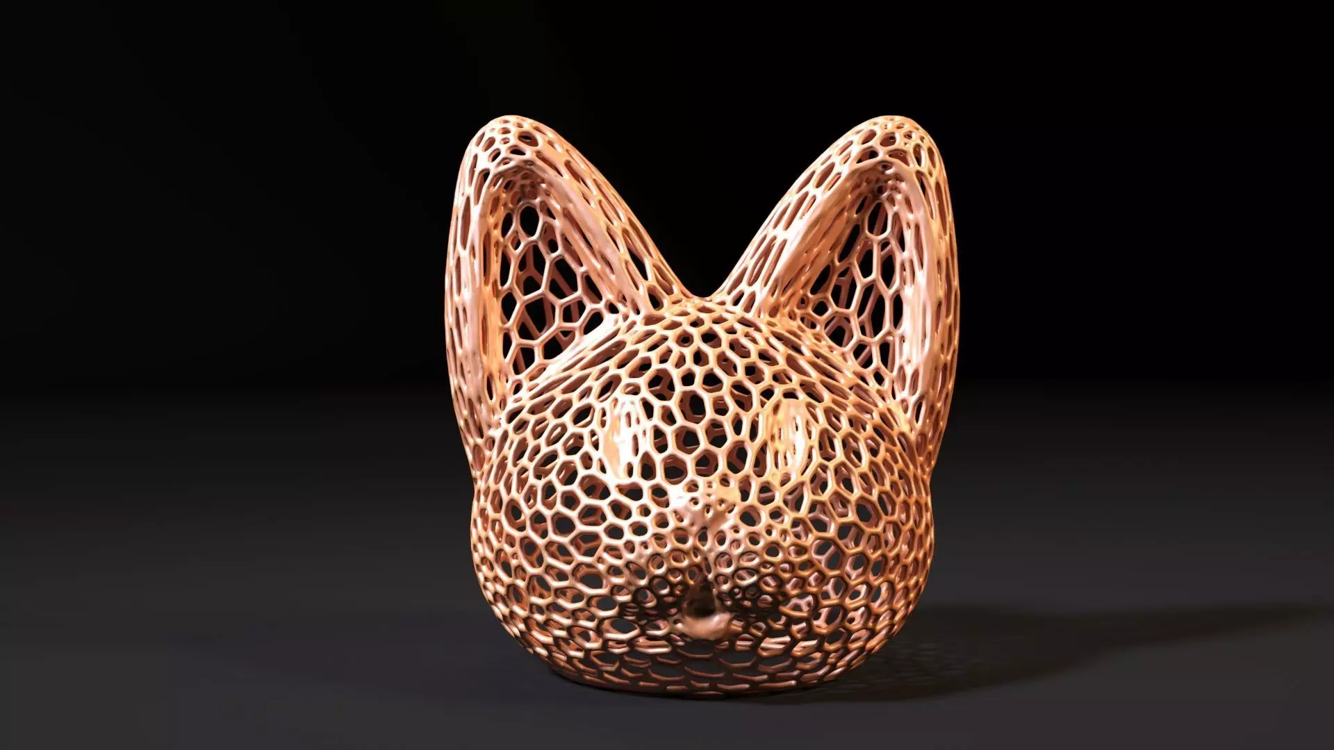 The model is a stylised figure in the form of a cat's head, made in the unique and modern Voronoi style. The shape of the cat is outlined with characteristic meshes that create the effect of a ‘split’ surface. This technique gives the model an interesting visual textural pattern that will look spectacular from different angles.