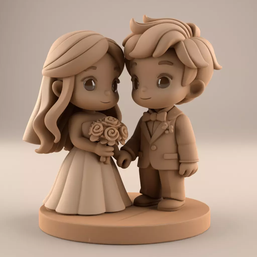 Get this lovely wedding couple 3D model! This STL file shows a cute bride and groom. They are in a sweet chibi style. It is perfect for your 3D printer.