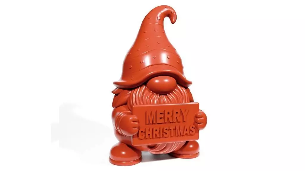 This Christmas gnome features a classic elf-like design with a festive touch, enhanced by the 'Merry Christmas' sign it holds. It's meant to bring a joyful and whimsical winter vibe to any setting.
