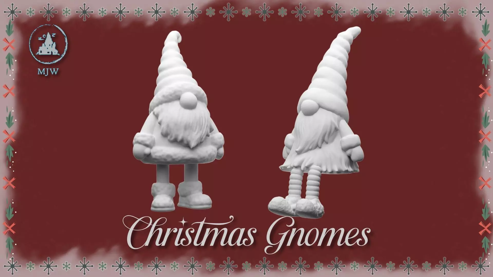 Scaled for 1:12 miniatures, dollhouses, and tabletop decor – but can be resized for your needs.Dimensions:Standing Christmas Gnome H: 19,02 mm, L: 8,21 mm, W: 10,47 mmSitting Christmas Gnome H: 20,10 mm, L: 13,72 mm, W: 9,36 mm