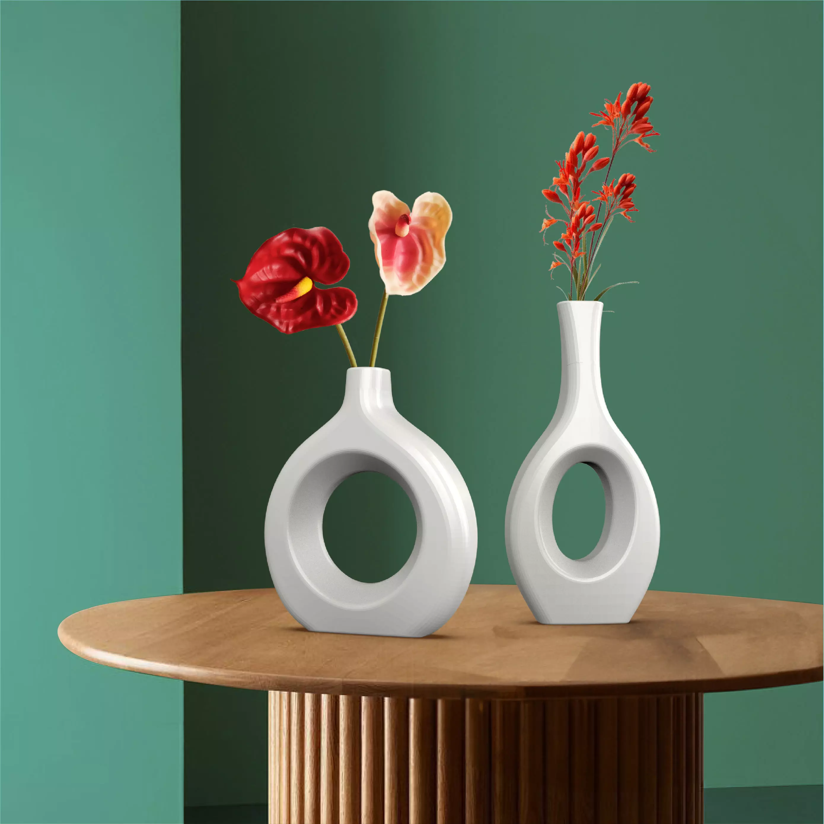Transform your living space with our Circular Hollow Vase Set – a bundle of two meticulously designed vases that epitomize Nordic style and modern elegance.