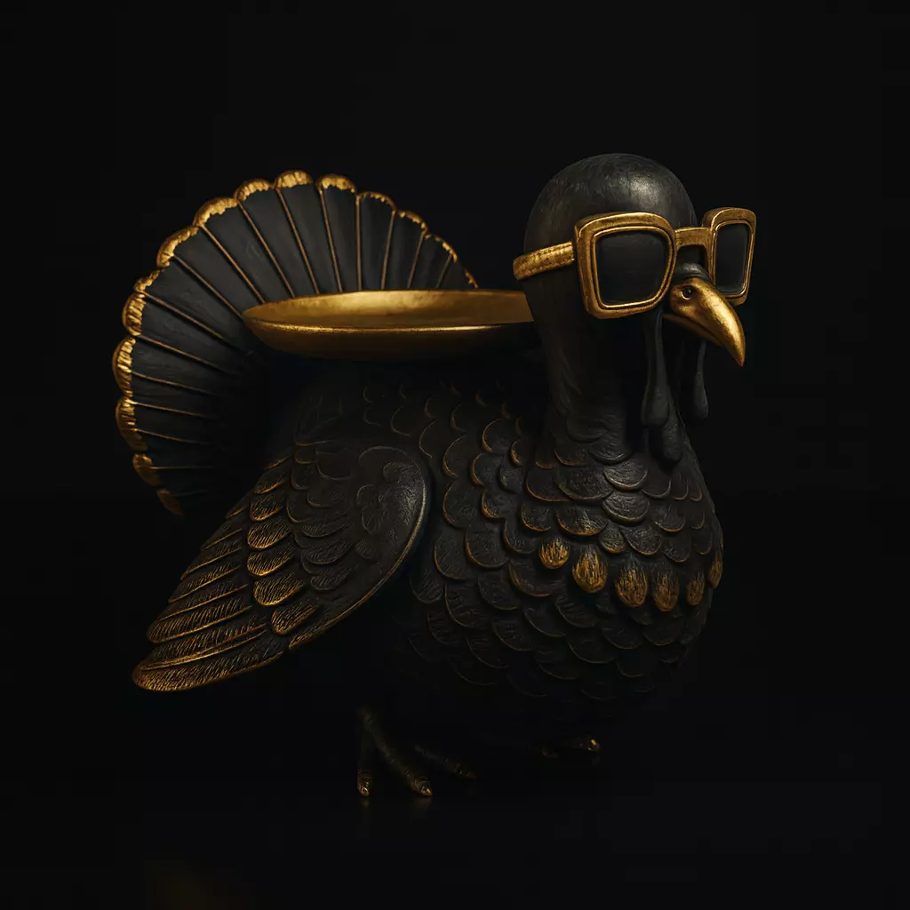 Bring a touch of humor and sophistication to your home with this one-of-a-kind 3D printed turkey figurine. This quirky turkey wears oversized sunglasses and is finished in a sleek black and gold design that blends fun with luxury. The detailed feather textures and bold gold accents make it a standout piece that’s perfect as a Thanksgiving centerpiece, a conversation starter, or a unique gift for friends and family. Whether displayed on a shelf, dining table, or office desk, this turkey adds charm, character, and a modern artistic vibe. Great for those who love playful yet stylish décor, this turkey combines festive spirit with a dash of cool personality. Handmade with care using durable materials, it’s designed to last and brighten your space for many seasons.