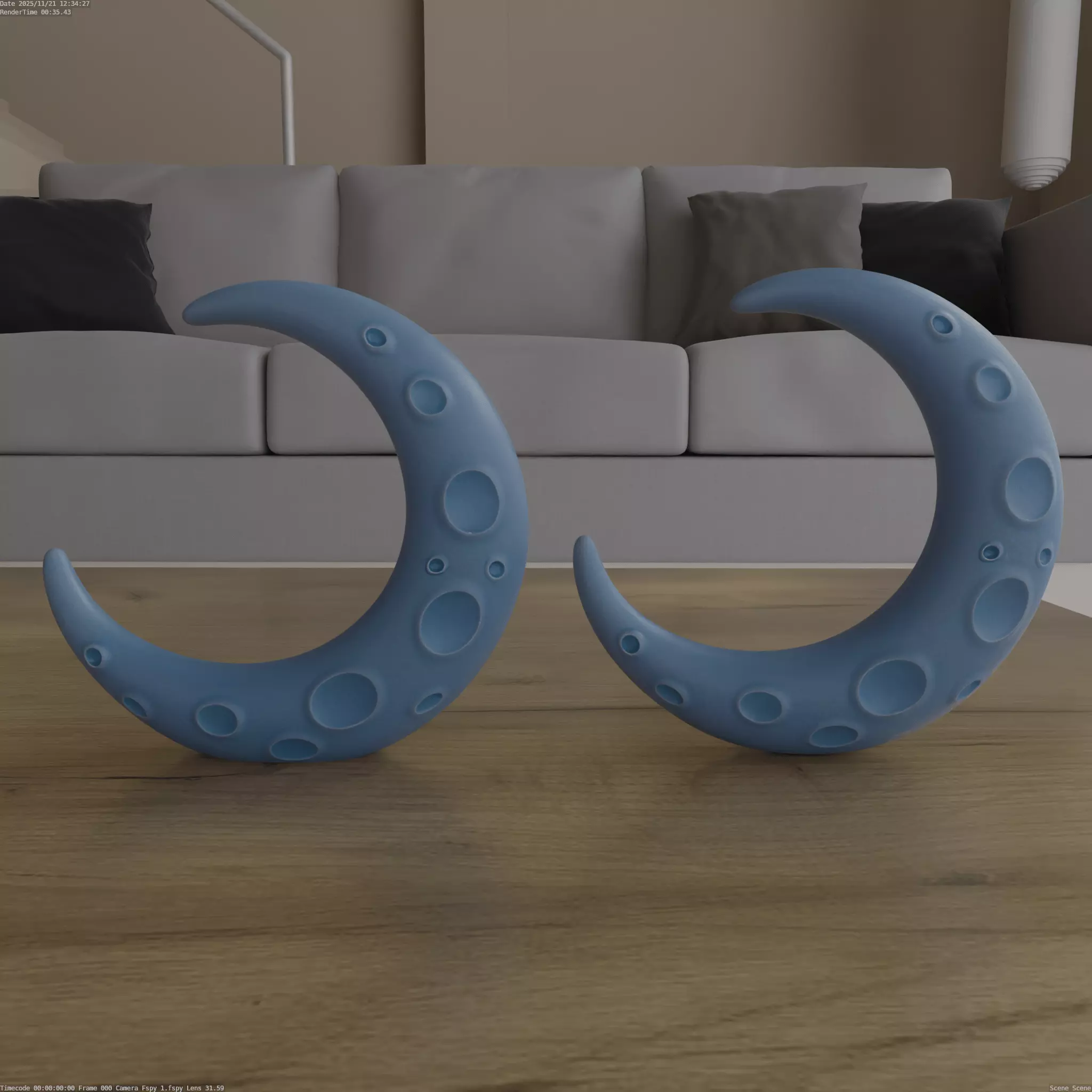 Design ConceptThe model concept is inspired by the celestial theme, focusing on the crescent moon shape. It can be used as a decorative item with unique crater-like dimples adding a touch of realism and a modern aesthetic.