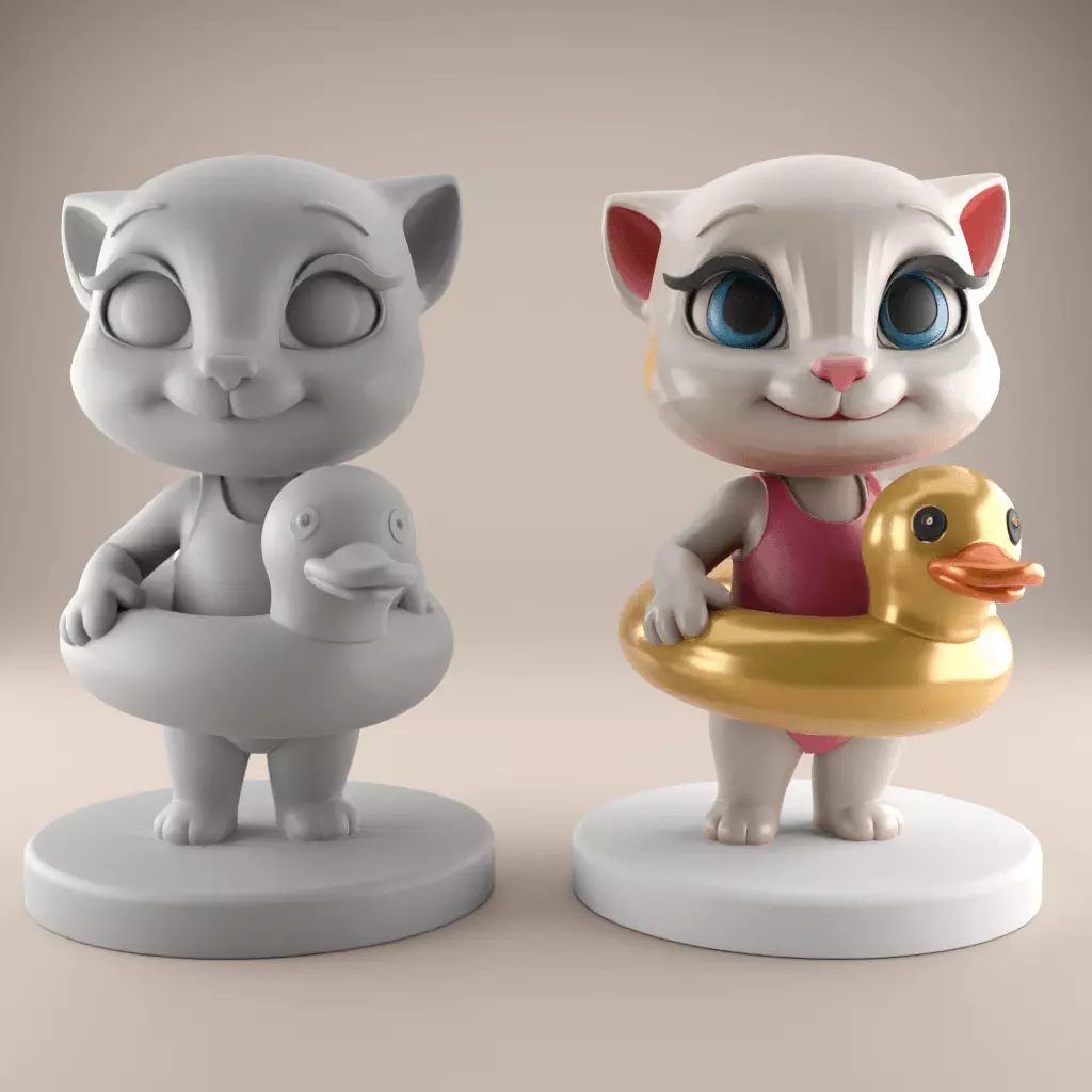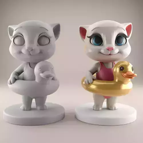 Design ConceptThis model features a cute cat wearing a swimsuit and holding an inflatable duck floatie. The design aims to capture a playful and summery vibe, perfect for decorative purposes or as a toy.