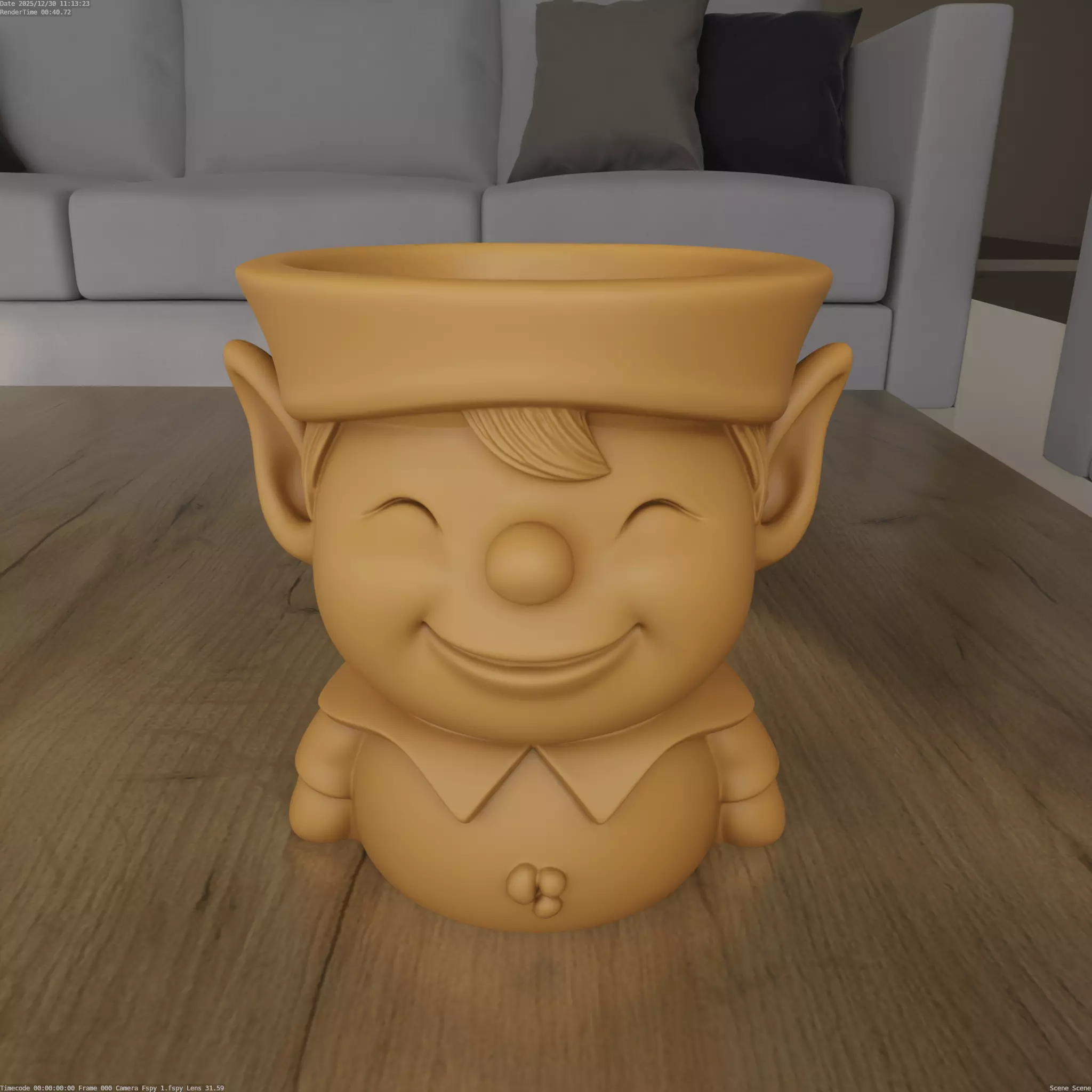 Design ConceptThe design draws inspiration from fantasy themes, characterized by a cheerful elf face and a friendly demeanor. This whimsical character serves as both a planter and a decorative piece.